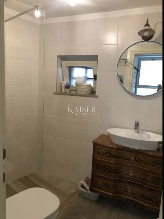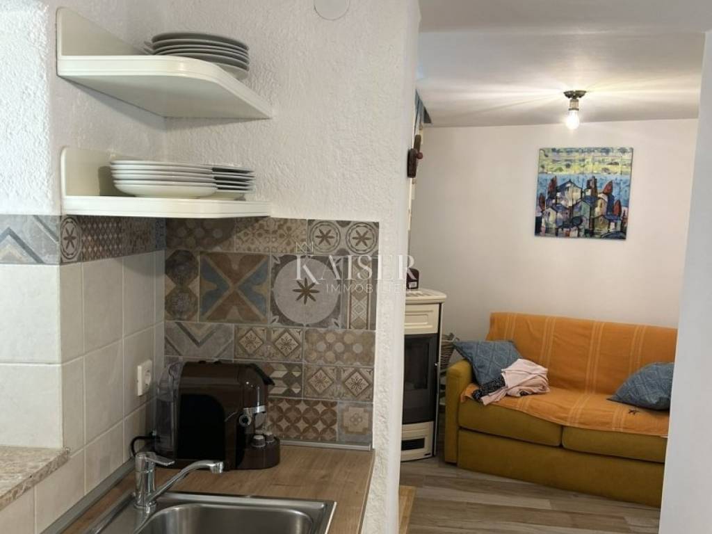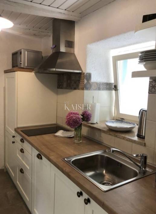 Mošćenice – a charming apartment in the heart of the old town centre A beautifully decorated apartment measuring 42 m² is for sale through the Kaiser Immobilien agency, located within the historic centre of picturesque Mošćenice, an authentic town that rises like an amphitheater above the Adriatic Sea. This medieval pearl of Kvarner, with its narrow stone streets, preserved architecture and peaceful atmosphere, offers a unique feeling of living in a space where history meets nature. The apartment is located within the stone walls of the old town, in a quiet street that exudes tradition and the charm of bygone times. It has recently been thoroughly renovated and decorated, with attention paid to every detail – from preserving original elements to creating a contemporary, pleasant ambience for living or relaxing. The space consists of one bedroom, a living room with an open-concept kitchen and dining area, and a fully equipped bathroom. The interior is permeated with the warmth of rustic materials, wooden details and light tones, creating harmony between the spirit of the past and modern comfort. This is an ideal opportunity for those looking for a peaceful retreat by the sea, and also an excellent investment for tourist rental, given the exceptional location and the increasing demand for authentic accommodation. The beach in Mošćenička Draga, one of the most beautiful in Kvarner, is only a few minutes' drive away, while nearby there are numerous promenades, viewpoints and gastronomic destinations that further enrich the experience of staying in this special corner of Istria. If you are looking for a combination of historical surroundings, elegance and functionality in one of the most beautiful places in Kvarner, this apartment is the right opportunity.