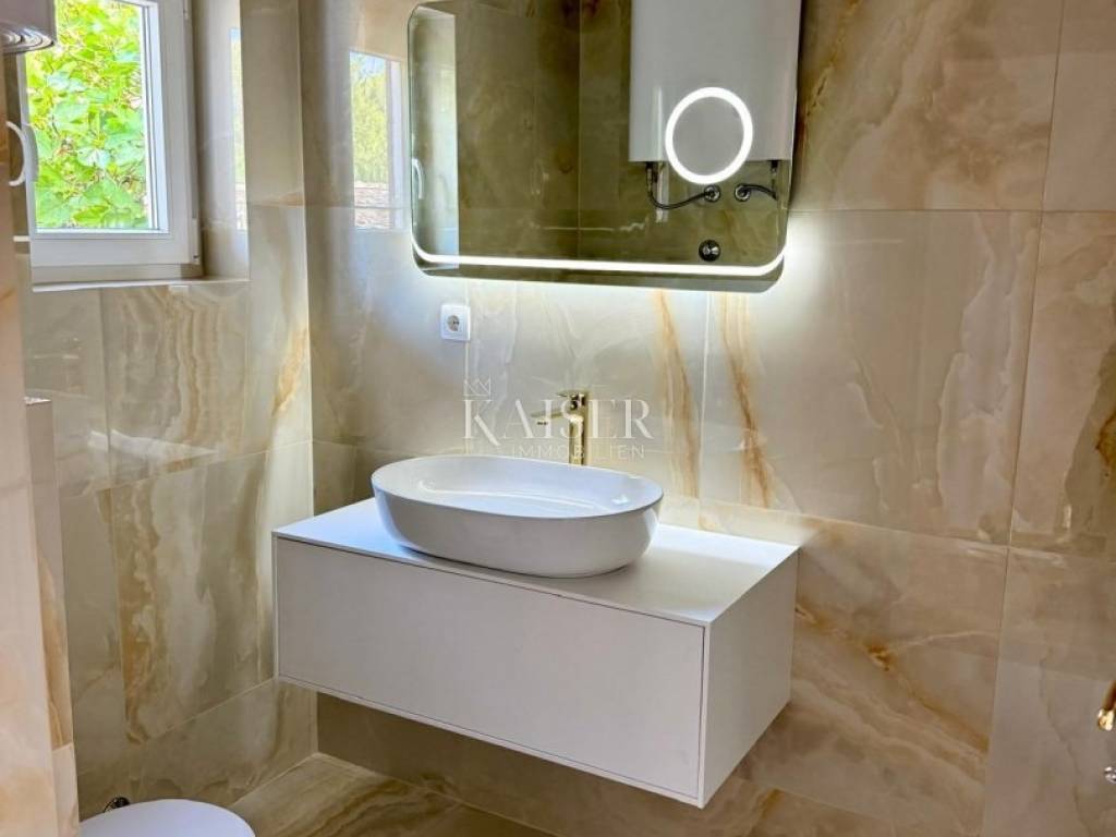 The beautiful natural beaches of the island of Cres are the biggest attraction of the island and most of them are located along the western coast. The most visited beaches, those near Cres and other places, are easily accessible. Others can only be reached by narrow paths that descend steeply from the slopes raised above the sea. Kaiser Immobilien presents a detached family house in the town of Cres - first row to the sea with four residential units and a courtyard building in a unique and unrepeatable location with direct access to the promenade - lungomare and 300 meters from the first beach. The house has a large landscaped garden of over 560m2 and a beautiful view of the harbor. The house consists of a basement, ground floor and first floor: - basement - two studio apartments of 23 and 20m2 with a terrace and a separate entrance. - ground floor - an apartment consisting of a hallway, kitchen with dining room, living room, three bedrooms, two bathrooms and an anteroom, with a total area of 99 m2. There is also a storage room of 8m2 on the same floor. The apartment has a beautiful loggia of 16m2, which can be accessed from the living room and bedrooms. The apartment was completely renovated in 2025. - 1st floor - an apartment consisting of an entrance, hallway, kitchen with dining room, living room, three bedrooms, two bathrooms and a hall, with a total area of 102.46 m2. In addition to the entrance area, the apartment has an identical layout to the apartment on the ground floor. The apartment is completely renovated, decorated and furnished. The apartment also has a spacious loggia of 16m2 with a fantastic view of the sea and marina, and the surroundings of the town of Cres. All residential units are divided into floors, decorated, well-furnished, air-conditioned and in operation. Within the large and landscaped garden decorated with olive trees and Mediterranean plants, there is a smaller accompanying building: a stone guest house of 31m2, which consists of a kitchen with living room, bedroom and bathroom. 3 parking spaces are provided on the garden, and there is also a public parking nearby. The plot, which also has small storage rooms for garden tools, has enough space to build a swimming pool. This property is located in a unique location, in the center of the town, right by the sea, and about a hundred meters from the first beaches. An ideal property for a spacious family home with additional apartments for tourism. Although divided into 4 residential units, the house is being sold as one unit. Distance: Zagreb - 200km Ljubljana - 170km Vienna - 560km Venice airport - 280km The agency commission for the buyer is 3% + VAT. The commission covers all services related to the purchase and is paid upon conclusion of the first legal act. We are at your disposal for any additional information about this and other properties on offer. Damir Mlacović damir@kaiser-immobilien.hr http://kaiser-immobilien.hr/ +385-98-339-933
