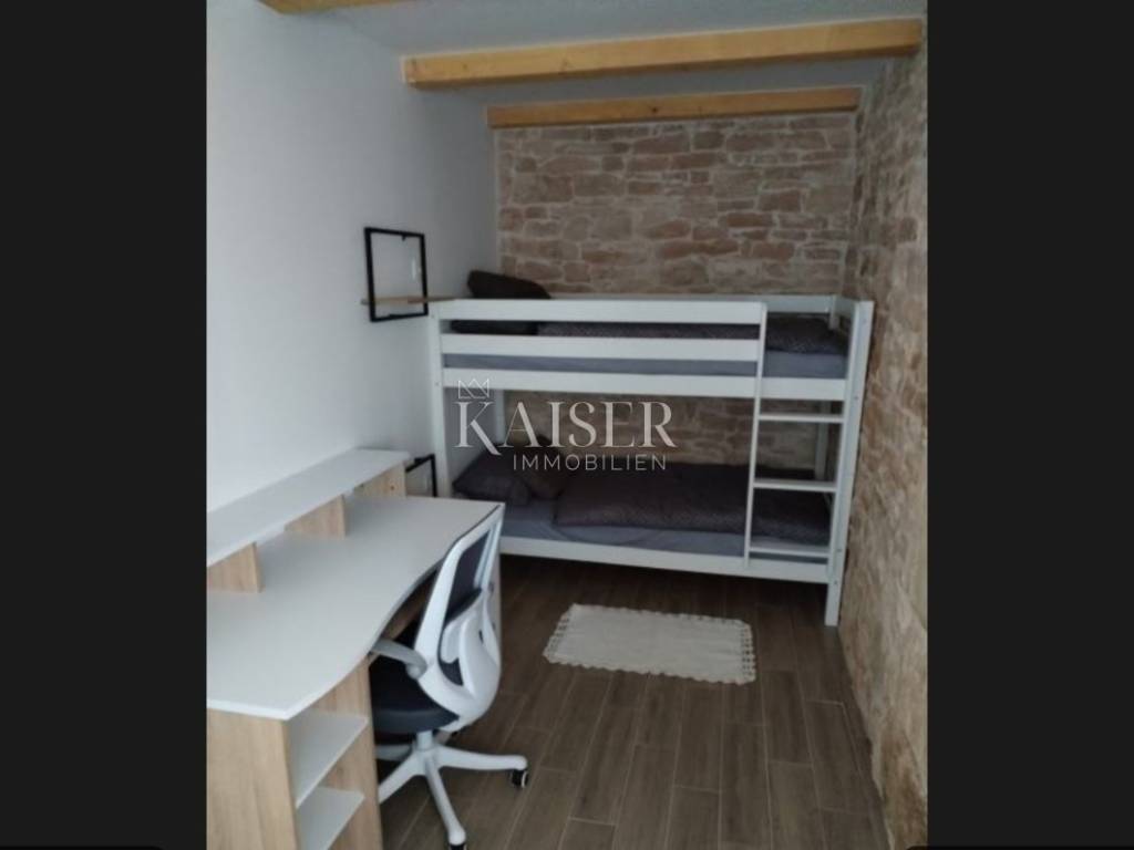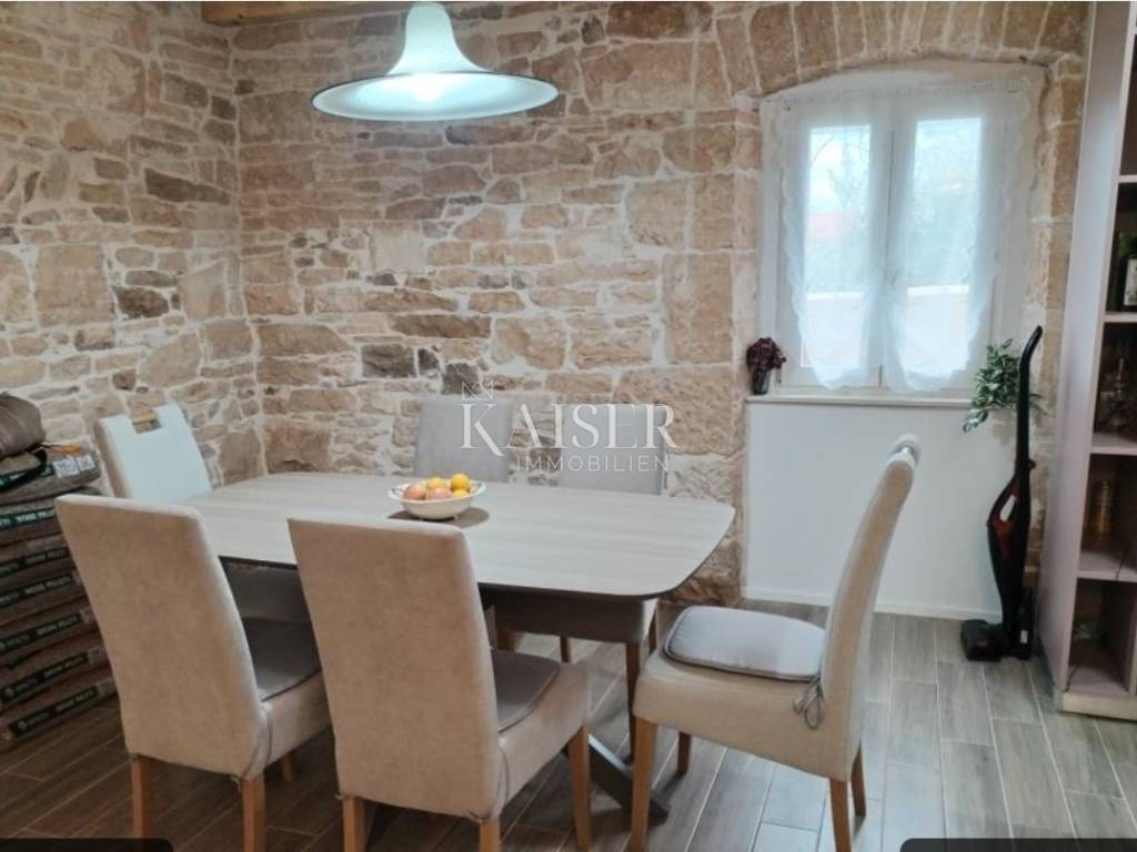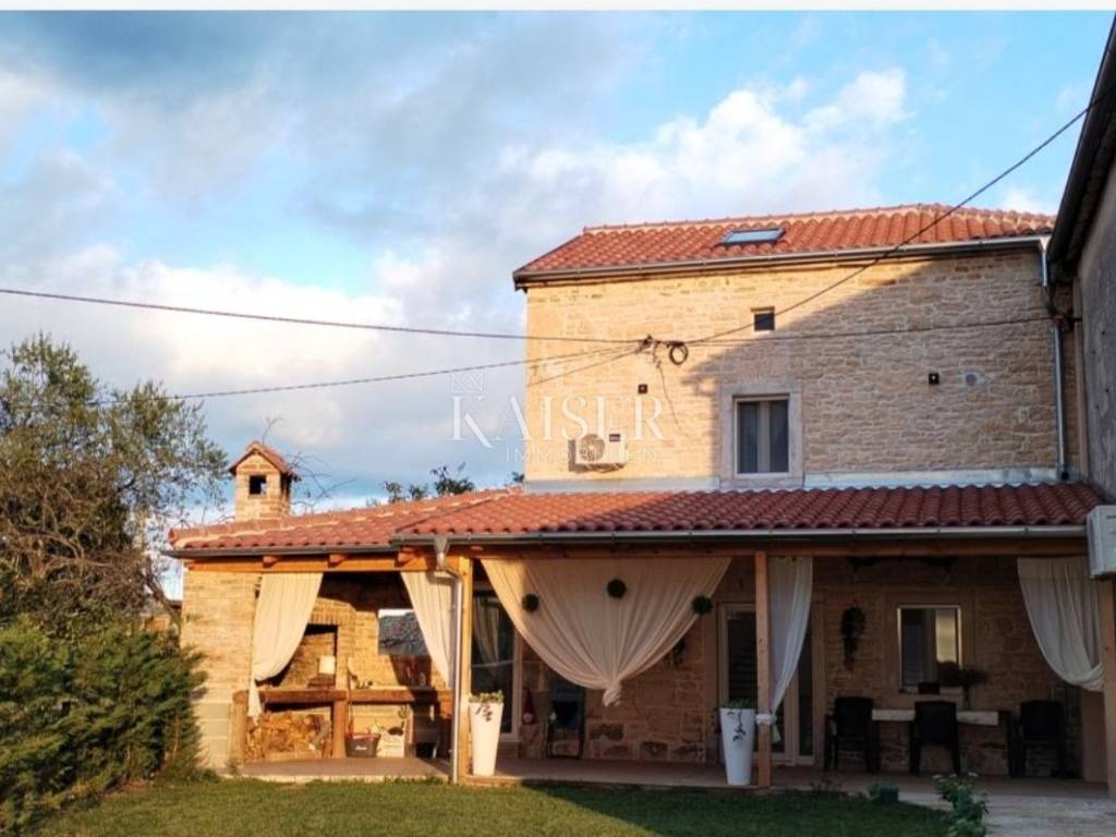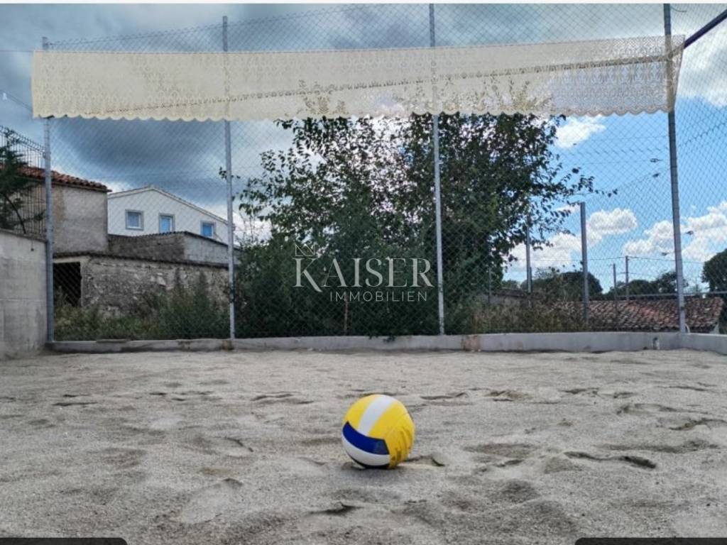 KAISER IMMOBILIEN presents you a magical renovated house with a swimming pool Barban is a picturesque medieval town in eastern Istria, located on a plateau above the Raša River Valley. It is known for its historic center with preserved city gates, an old tower and the Loredan family palace, which gives it a distinct historical charm. The town is best known for the traditional equestrian game Trka na prstenac, which is held every year in August and attracts numerous visitors. Barban exudes a peaceful Istrian atmosphere, surrounded by green hills and numerous smaller settlements, and is ideal for those who want to experience authentic Istria, its culture, tradition and natural beauty. This beautifully renovated house exudes a combination of Istrian charm and contemporary elegance, creating a warm and inviting ambiance ideal for relaxation and enjoyment. On the ground floor there is a spacious open-space area in which a modernly equipped kitchen, a comfortable living room and a charming fireplace harmoniously intertwine, giving the space a special feeling of home, warmth and intimacy. On the first floor there are two exceptionally beautiful and carefully decorated rooms – one is a gentle, cheerful children's room, filled with light and comfort, and the other is an elegant, peaceful double room, ideal for relaxing after a day spent in nature. On the second floor there is an additional, particularly charming room with its own bathroom, perfect for guests or as a private retreat within the house. The surroundings of the house are equally enchanting – a spacious courtyard surrounded by greenery provides complete privacy and peace, while in the center there is a beautiful swimming pool that invites you to refresh and relax during sunny days. Next to it is a volleyball court, ideal for socializing, having fun and an active vacation, whether with family or friends. The entire space exudes harmony, beauty and carefully chosen details, making this house the perfect place for unforgettable moments in the heart of Istria.