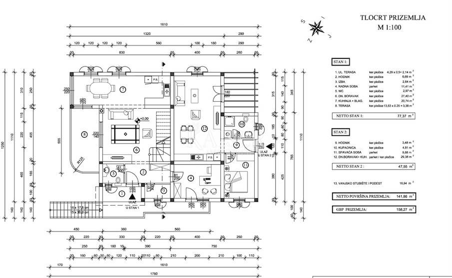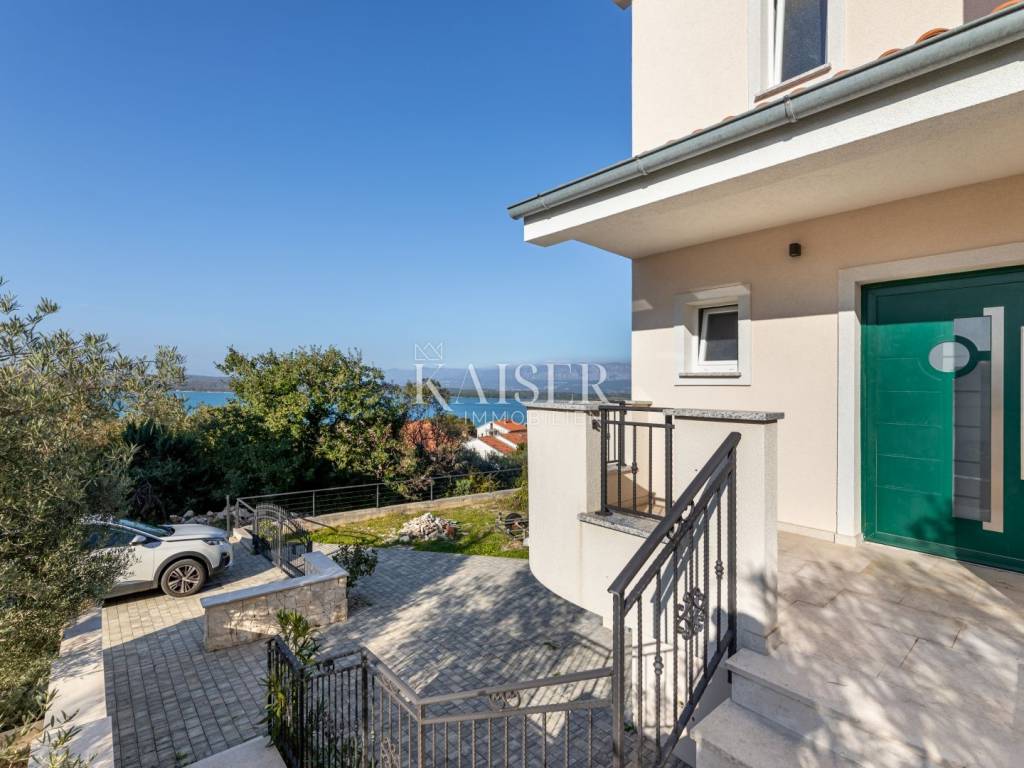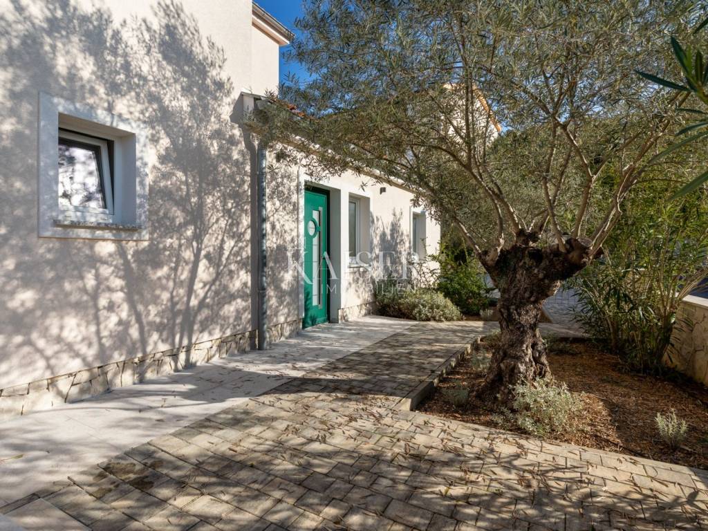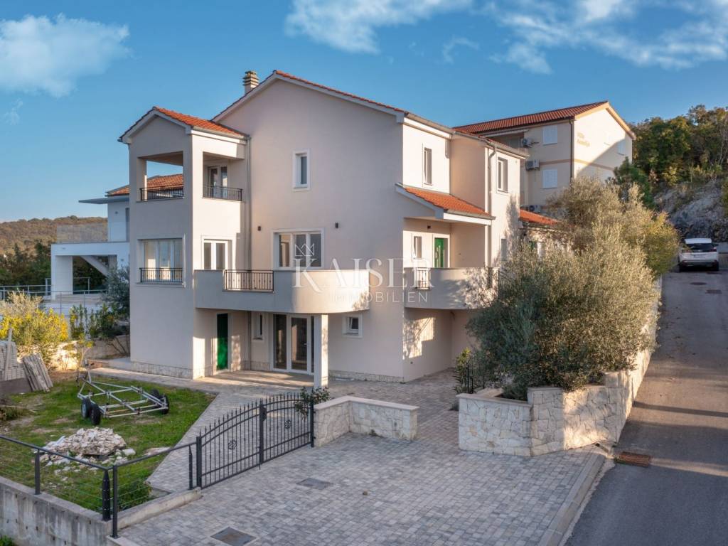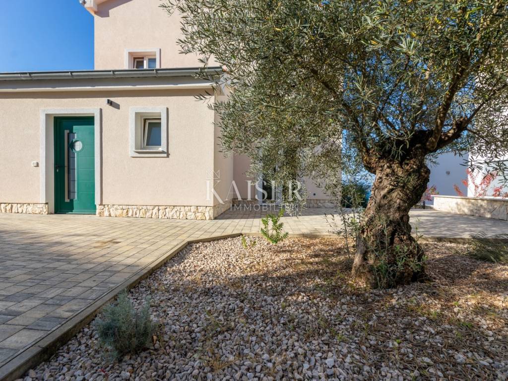 Kaiser immobilien is mediating the sale of a beautiful detached family house in a unique location, in the town of Klimno, island of Krk. The sea view from almost every floor of this property is something special, and that view, the proximity of the sea and the scents of the Mediterranean are what make this property truly special. Klimno is the largest town in the bay and one of the oldest in the area, located on the eastern side of the island of Krk, and naturally well protected from the influence of the bora and jugo. It is a small, quiet and romantic town adorned with the 14th century church of St. Clement. It is known for its rich catering offer and restaurants offering seafood and other specialties along with the inevitable autochthonous wine and the mooring of the sea and dry marina. In addition to regular guests, it is also an unavoidable excursion destination surrounded by Mediterranean vegetation that can be reached by sea or land. There are several beautiful beaches in the town itself, and there is also a dog beach nearby. The house is built on a plot of 680m2, located just 200m from the sea, and extends over three floors. The property has three separate residential units with a total net residential area of 266m2. The larger, two-story residential unit of 159m2 on the first floor has a spacious open-concept living area that includes a living room, kitchen and dining room, which opens onto a terrace with a beautiful view of the sea and the Klimno bay. On the same floor there is also a storage room, toilet, office with an external entrance, with two parking spaces and a small terrace. An open staircase paved with natural Istrian stone leads to the second floor where there are three bedrooms, the largest of which has an en-suite bathroom, a walk-in wardrobe and a balcony with a stunning view of the sea, the bay and nearby villages. On the same floor there is another bathroom and a laundry room that can be converted into an additional bedroom. The smaller 47m2 residential unit at the back of the house consists of an open living room with kitchen, bathroom and bedroom. The exterior has a spacious yard, a terrace with a sea view and a parking space. In the front part of the house, on the ground floor, there is a 42m2 studio consisting of one room and a bathroom. Right next to the studio, there is a 5m2 boiler room. Top quality materials and equipment were used in the construction and furnishing, so that the entire building has underfloor heating with the help of a heat pump from the renowned manufacturer Daikin, a hot water tank, and a multi-split Daikin air conditioning system. The combination of top-quality exterior PVC joinery and a 10cm polystyrene facade results in exceptional energy efficiency, which is confirmed by the A+ energy certificate. Interior joinery from a renowned Italian manufacturer, top-quality ceramics and sanitary ware were also installed, and the interior and exterior staircases are made of natural Kanfanar Istrian stone. Also, all installations (water, electricity, preparation for solar heating and a photovoltaic power plant) were carried out in the basement towards the boiler room. The property's yard is completely decorated in Mediterranean style - olive trees several hundred years old, rosemary, lavender, immortelle, oleanders and other plants. The surfaces are paved with concrete pavers, and along the house, partly with Istrian stone. The surrounding walls are completely covered with natural Benkovac stone. The fences on the property (internal and external) and the yard are made of wrought iron in anthracite color. In front of the property, there is a space for the construction of a swimming pool measuring approximately 7x4m, which offers a view of the sea, and this is the only unfinished part of the yard. Excellent property for year-round enjoyment in the Mediterranean atmosphere or as an investment in tourism, recommended by the agent. All documentation is in order, the house has a use permit. ID CODE 105-315 The agency's commission for the buyer is 3% + VAT and is paid in the case of purchasing the property, upon conclusion of the first legal act.