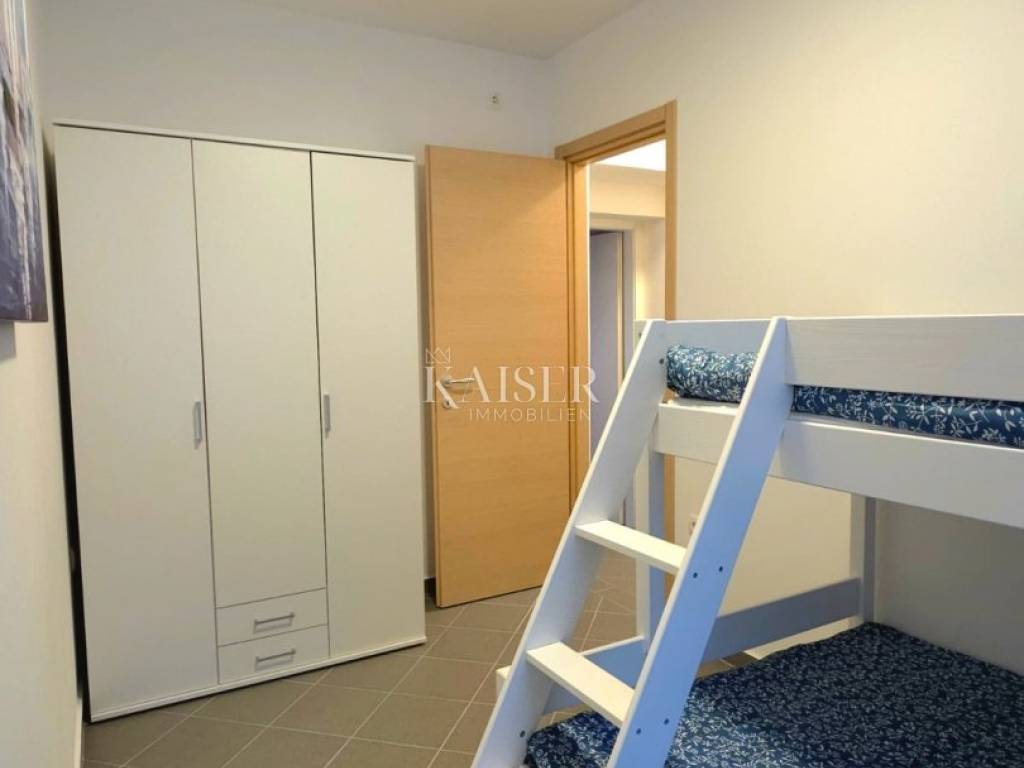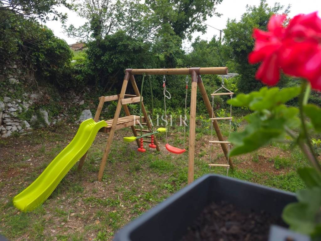 Kaiser immobilien presents a unique opportunity to buy a house in the immediate vicinity of one of the most beautiful beaches in Kvarner. The house is located 1.9 km from the pebble beach Klančac, and the nearest shop and restaurant are also located in the center of Brseč. There are numerous opportunities for active vacations in the surrounding area, including hiking, cycling and water sports. You can also enjoy summer events on the Opatija Riviera and explore romantic Istria. The property is a semi-detached house and consists of 130 m2 of living space and is located on a plot of 300 m2 in total. It extends over a basement, ground floor and first floor. The basement consists of two separate rooms with their own entrances. They are currently used as a storage room and a social area. The ground floor is designed as a two-bedroom apartment with a total area of 82 m2. It provides an open space for socializing with a kitchen, dining room and living room with a terrace. It also offers two bedrooms and a bathroom. On the first floor there is a wellness room with a sauna designed as a relaxation area. The spacious terrace offers a covered jacuzzi and an additional pergola with seating. The yard is fully landscaped and is used as a parking lot, children's playground and grill area. The access to the house is asphalted. The property has been completely renovated including floor and wall coverings, installations, sanitary facilities, kitchen, furniture and the like. It has been renovated to serve as a tourist rental. The documentation is completely clean and tidy. Life in the vicinity of Brseč and Mošćenička Draga offers a unique combination of natural beauty, cultural heritage and quality of life. Although it is away from the main tourist centers, the proximity of Opatija and Rijeka allows you to enjoy cultural events and restaurants, while at the same time offering peace and privacy. Good connections with Istria and the islands of Cres and Lošinj. The ferry port is only a 10-minute drive away. Public transport is 300 meters away. For a viewing or more information, please contact the agent. Mario Pintar mario@kaiser-immobilien.hr +385 91 5432 750