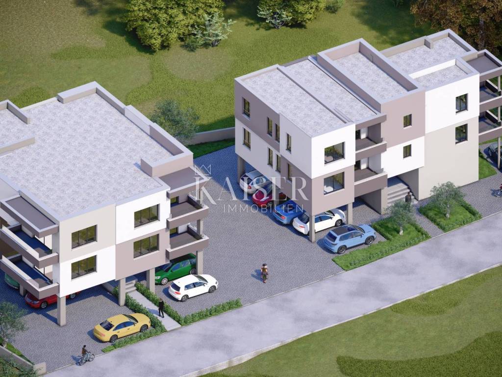 Kaiser Immobilien proudly presents this new building in an excellent location in a quiet residential part of Šibenik, Brodarica, where two smaller residential buildings are being built with a total of 12 apartments, of which 6 are one-bedroom and 6 are two-bedroom. The buildings are of top quality construction and modern design, ideal for living, vacation or investment. The documentation is in order, and the apartments come with a loggia, parking spaces and storage, which further increases their functionality and attractiveness. One-bedroom apartment on the first floor with a living area of 49.60 m2 The apartment is located on the first floor of a modern residential building, and the total living area is 49.60 m2. It extends through an entrance hall (3.30 m2), kitchen and dining room (14.68 m2), living room (11.39 m2), bathroom (7.49 m2) and bedroom (12.40 m2). The spacious and bright spaces offer a comfortable layout, perfect for everyday life. In addition to the interior spaces, the apartment also has a covered loggia of 7.58 m2, ideal for enjoying the fresh air or relaxing with views of the surroundings. The apartment is equipped with air conditioning in every room, parquet in the living room and bedroom, and underfloor heating in the bathroom. Additional value includes two parking spaces (one covered) and a storage room in the basement of the building (6.46 m2). Completion of works and move-in are planned by the end of 2025. Brodarica is well connected to Šibenik (only 8 minutes drive), while the popular Rezalište beach is just a few minutes walk away. There is a school, kindergarten, shops and public transport in the area. This settlement offers a peaceful and quality life, while the proximity of the sea and the beach provides excellent conditions for family vacations and recreation. Nearest beach - / 5 minutes Zadar Airport - Zemunik - 70 km / 50 minutes Split Airport - 52 km / 40 minutes Zagreb: 350 km / 3 hours Ljubljana: 384 km / 4 hours Vienna: 694 km / 6 hours Munich: 790 km / 8 hours Budapest: 683 km / 6 hours The agency commission for the buyer is 3% + VAT. The commission covers all services related to the purchase and is paid only in the case of purchasing a property, upon conclusion of the first legal act. For more information, please contact: Ivana Skoblar Tel: +385 98 973 11 54 E-mail: ivana.skoblar@kaiser-immobilien.hr Property code: 136-11