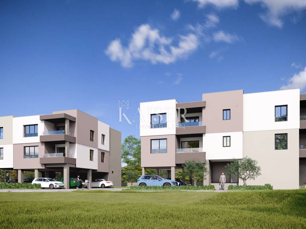 Kaiser Immobilien proudly presents this new building in an excellent location in a quiet residential part of Šibenik, Brodarica, where two smaller residential buildings are being built with a total of 12 apartments, of which 6 are one-bedroom and 6 are two-bedroom. The buildings are of top quality construction and modern design, ideal for living, vacation or investment. The documentation is in order, and the apartments come with a loggia, parking spaces and storage, which further increases their functionality and attractiveness. Two-bedroom apartment on the second floor with a living area of 60.41 m2 The apartment is located on the second floor of a modern residential building, the total living area is 60.41 m2. It extends through an entrance hall (4.88 m2), kitchen and dining room (15.39 m2), living room (11.87 m2), bathroom (5.28 m2) and two bedrooms SS1 (11.39 m2) and SS2 (11.56 m2). The spacious and bright spaces offer a comfortable layout, perfect for everyday life. In addition to the interior spaces, the apartment also has a covered loggia of 5.72 m2, ideal for enjoying the fresh air or relaxing with views of the surroundings and the sea. The apartment is equipped with air conditioning in every room, parquet in the living room and bedroom, and underfloor heating in the bathroom. Additional value includes two parking spaces (one covered) and a storage room in the basement of the building (8.05 m2). Completion of works and move-in are planned by the end of 2025. Brodarica is well connected to Šibenik (only 8 minutes drive), while the popular Rezalište beach is just a few minutes walk away. There is a school, kindergarten, shops and public transport in the area. This settlement offers a peaceful and quality life, while the proximity of the sea and the beach provides excellent conditions for family vacations and recreation. Nearest beach - / 5 minutes Zadar Airport - Zemunik - 70 km / 50 minutes Split Airport - 52 km / 40 minutes Zagreb: 350 km / 3 hours Ljubljana: 384 km / 4 hours Vienna: 694 km / 6 hours Munich: 790 km / 8 hours Budapest: 683 km / 6 hours The agency commission for the buyer is 3% + VAT. The commission covers all services related to the purchase and is paid only in the case of purchasing a property, upon conclusion of the first legal act. For more information, please contact: Ivana Skoblar Tel: +385 98 973 11 54 E-mail: ivana.skoblar@kaiser-immobilien.hr Property code: 136-14