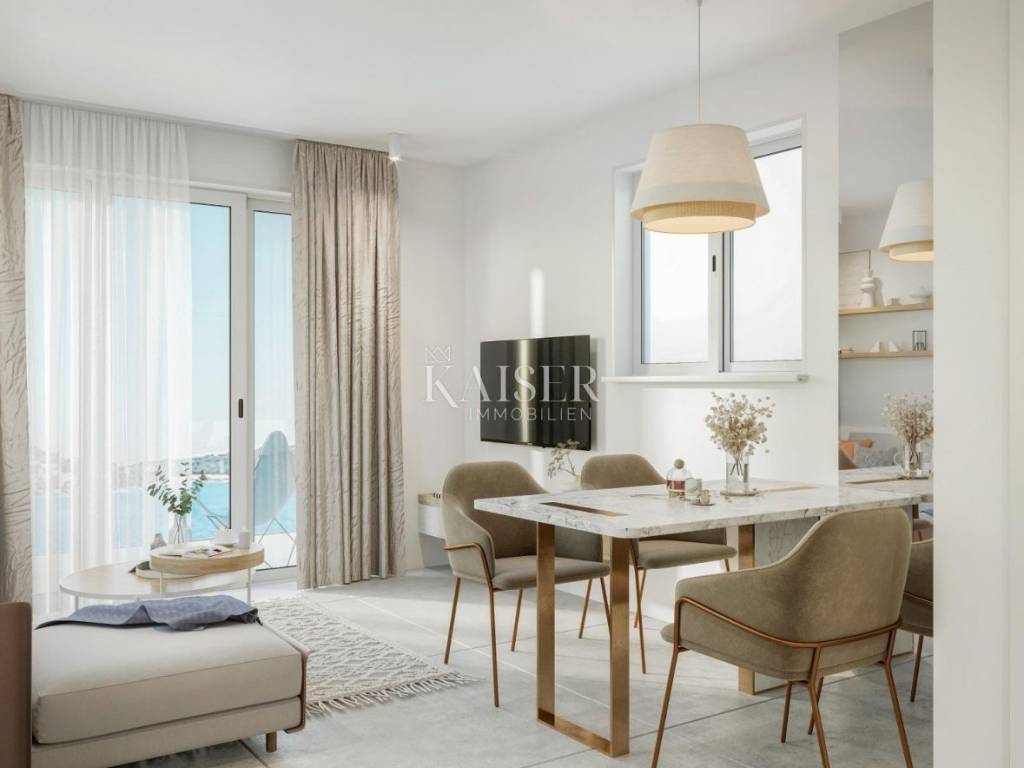 Kaiser Immobilien is mediating the sale of an apartment within a new, smaller residential building in Rogoznica. The building is being built in a quiet location, with a gentle slope that provides all apartments with a beautiful sea view. The distance from the first beach is only 200 meters. ABOUT THE APARTMENT: This spacious two-bedroom apartment on the second floor offers a functional layout and a terrace ideal for relaxing with a sea view. Location: Second floor Total net area: 67.35 m² Room layout: Living room, kitchen and dining room: 14.28 m² Hallway: 3.99 m² Bedroom 1: 10.60 m² Bedroom 2: 8.25 m² Bathroom: 5.11 m² Terrace: 5.64 m² Additional amenities: Allocated outdoor parking space. Open sea view. LOCATION: Rogoznica is one of the most desirable places on the Adriatic, combining rich history, beautiful nature and excellent connectivity. This property offers you the opportunity to enjoy all the charms of Dalmatia, whether you are looking for a home for yourself or a smart investment. Do not miss the opportunity to become the owner of a property in a prime location, the value of which only increases with time. The agency commission for the buyer is 3% + VAT and is paid in the case of real estate purchase, at the conclusion of the first legal deed. Viewing the property is only possible with the prior signing of a contract on mediation in real estate transactions. If you want to visit the property in person, please contact: Joško Bašić E-mail: josko@kaiser-immobilien.hr Tel: +385-91-511-2993 http://kaiser-immobilien.hr/