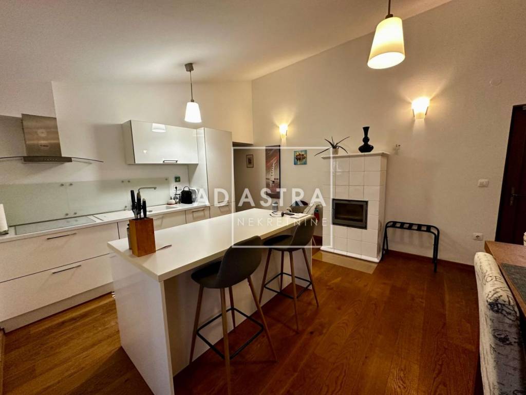 A furnished apartment is for sale on the first floor of a small building with only 3 apartments. The apartment is located in a quiet area. The sea is only 1 km away. It consists of a kitchen with a spacious and sunny living room, two bedrooms, and a bathroom. The apartment also comes with two parking spaces and a private garden, which also has a gas barbecue. The entire apartment has parquet floors. The windows are PVC. A wood stove adds a special cozy atmosphere on colder days.