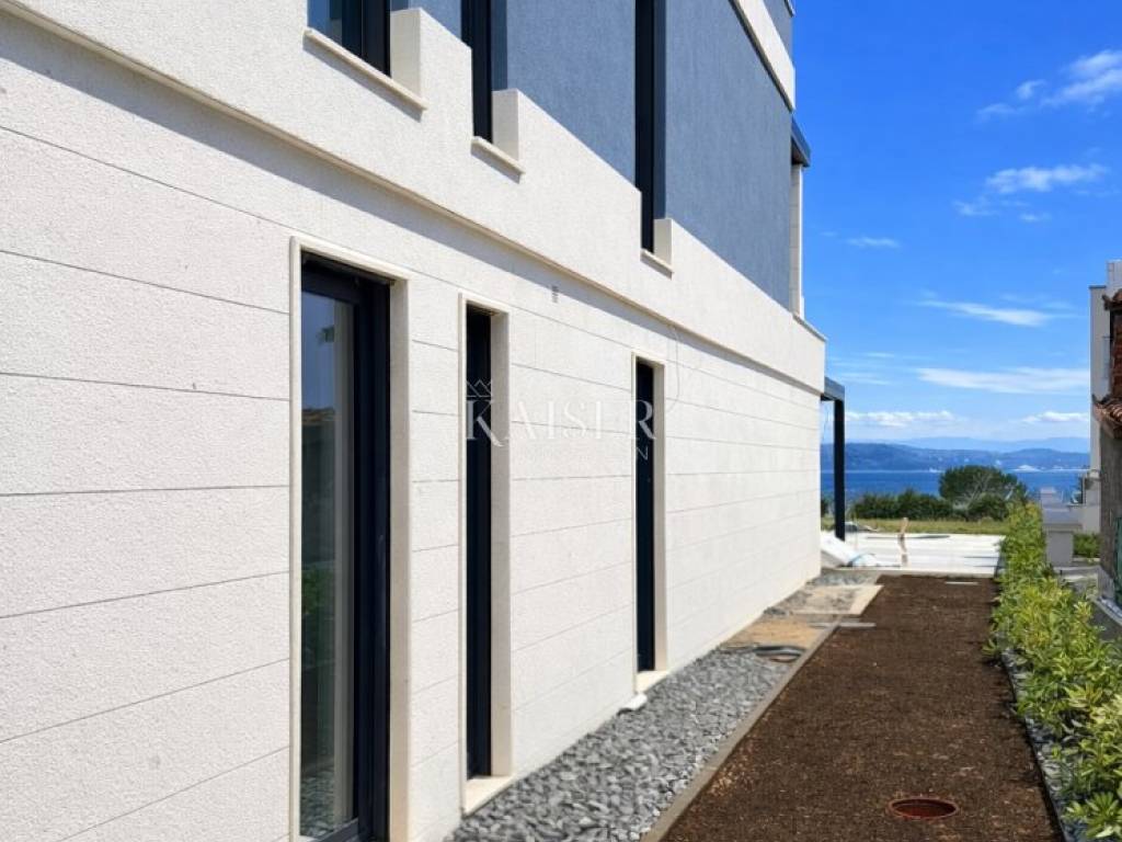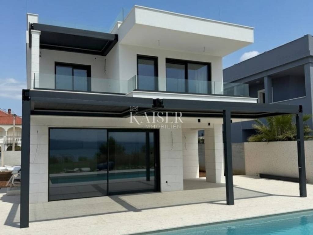 The apartment offers a wonderful view of the sea and the island of Ugljan, and the specialty of this property is the luxurious roof terrace with a pergola, total area of 55m2. There are two outdoor parking spaces belonging to the apartment in the landscaped garden.