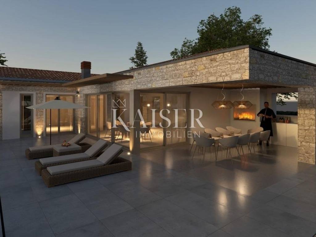 The villa is currently under construction, and the planned completion of the works is scheduled for early summer 2026. It is located on the edge of a small, authentic Istrian village, surrounded by luxury villas, swimming pools, greenery, forests and natural walkways, which ensures privacy, peace and a high quality of life in harmony with nature.