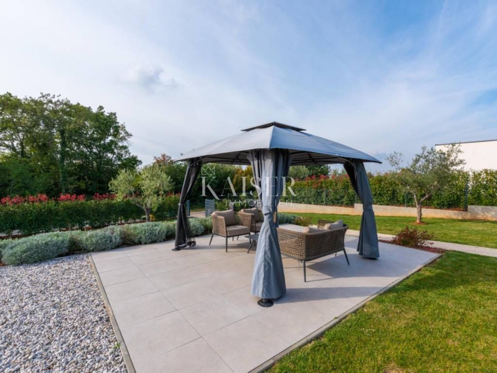 The villa is located on the edge of a charming Istrian village, in a quiet and elegant setting of modern villas, surrounded by greenery, nature and landscaped walkways that offer complete peace, privacy and a sense of luxurious living in harmony with nature. Silence and relaxation reign in this settlement, while the villa itself provides all the amenities needed for a comfortable, quality and carefree life or a luxurious tourist rental.