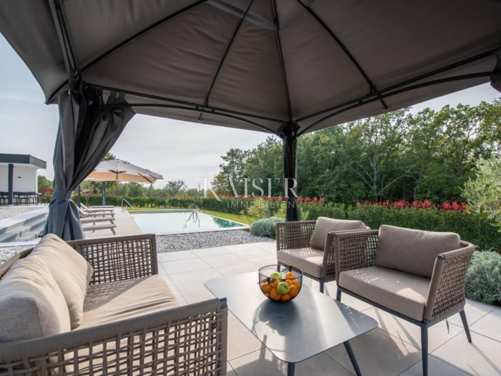 Kaiser Immobilien is proud to present an exclusive luxury villa for sale, situated in an extremely desirable location in Istria, just 15 kilometers from Poreč and its beautiful beaches.
