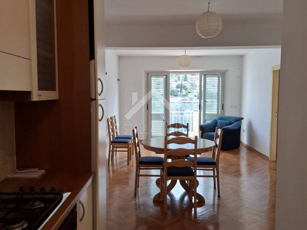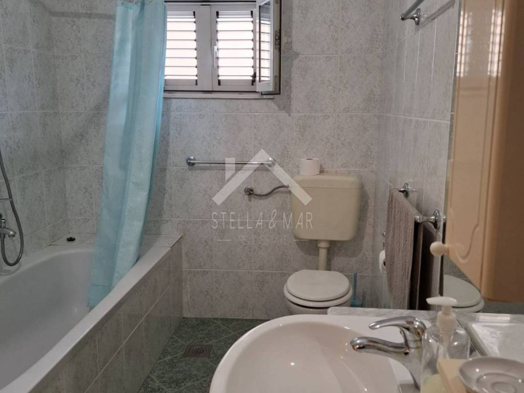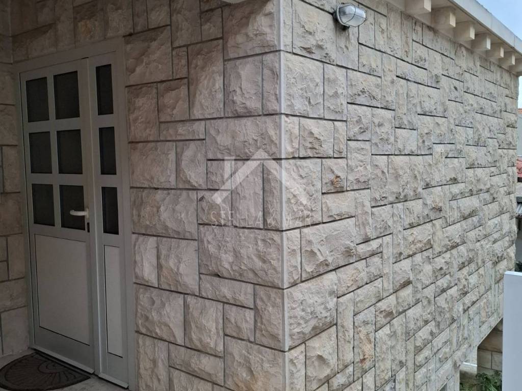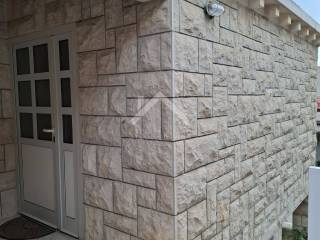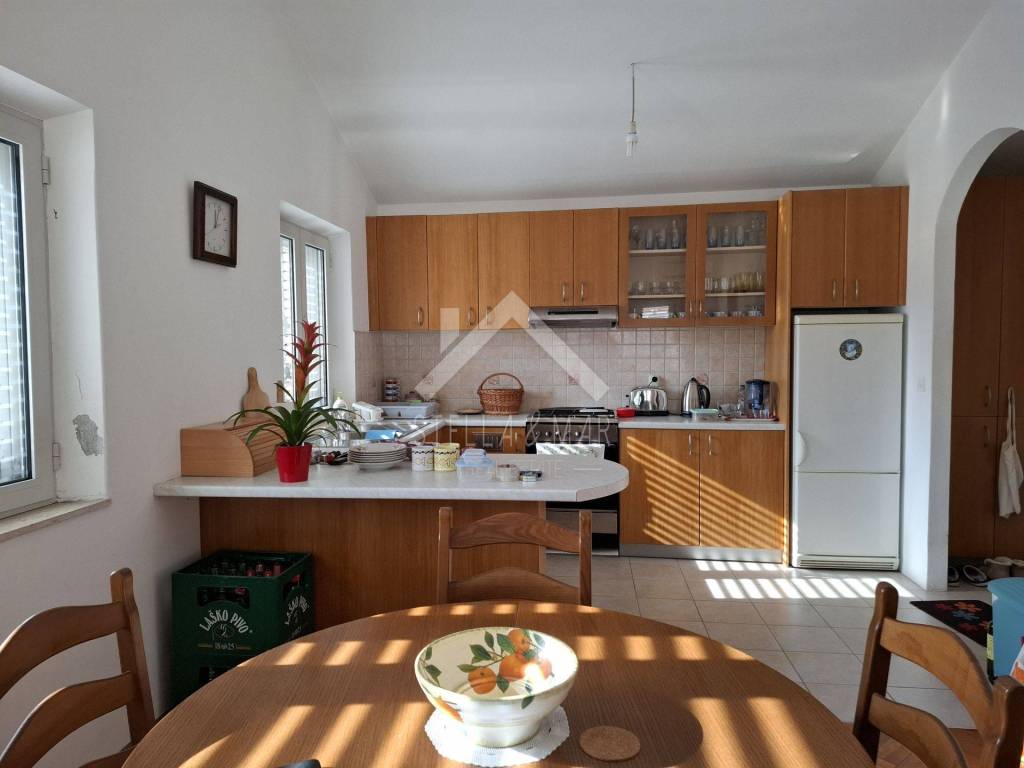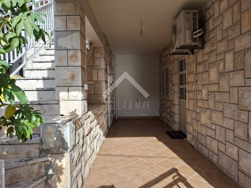 There is a large garage on the ground floor. The apartment on the first floor consists of a hallway, kitchen, dining room, living room, two bedrooms, bathroom, balcony, air conditioning.