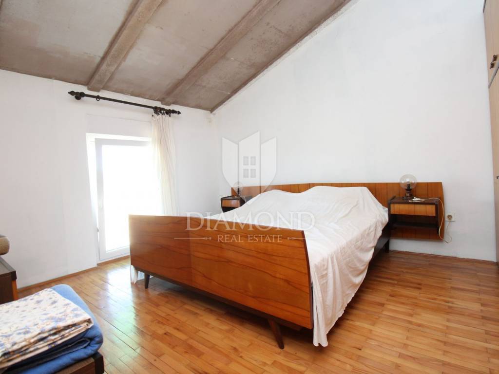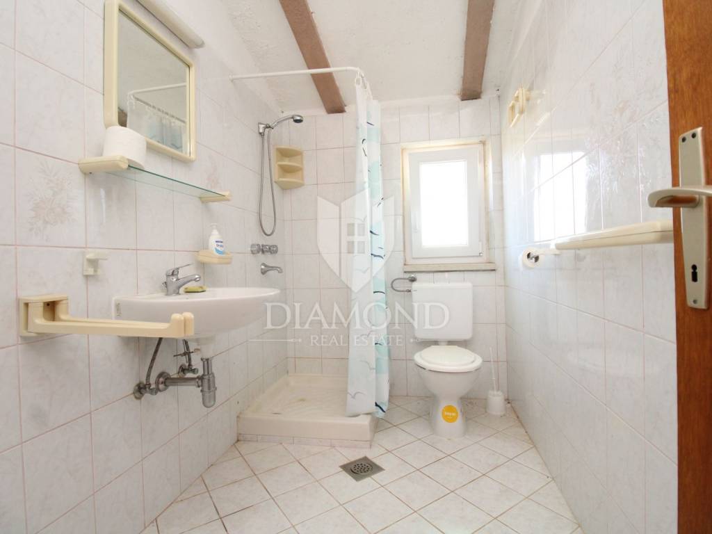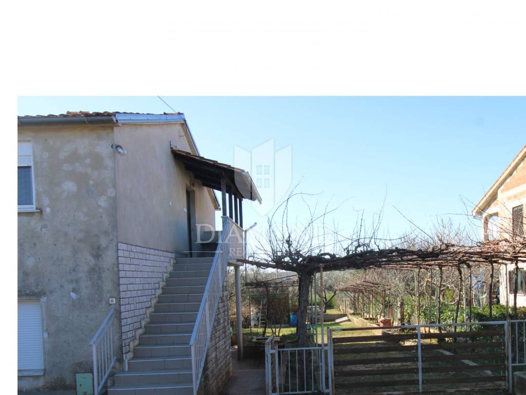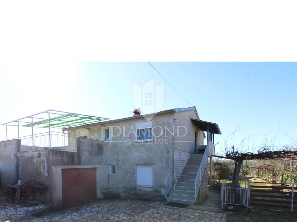 A house with two residential units and a spacious garden is located a few minutes' drive from Marčana. The house consists of two floors, of which the ground floor and the first floor are made, the garden belonging to the house is completely built. The ground floor of the house consists of a hallway, dining room and kitchen connected to a living room with access to a covered terrace with a view of the olive grove, bathrooms and two bedrooms, and the ground floor needs renovation. The first floor of the house also consists of a dining room and a kitchen connected to the living room, which has access to an open terrace with a view of the untouched greenery of nature and the Adriatic Sea, a bathroom and two bedrooms, of which the master bedroom has a spacious terrace under which there is a garage. Due to its position and the tranquility of the place where the property is located, it can be ideal for a family house or an investment property with minor adaptations. All the necessary facilities for life are located in the immediate distance from the house itself.