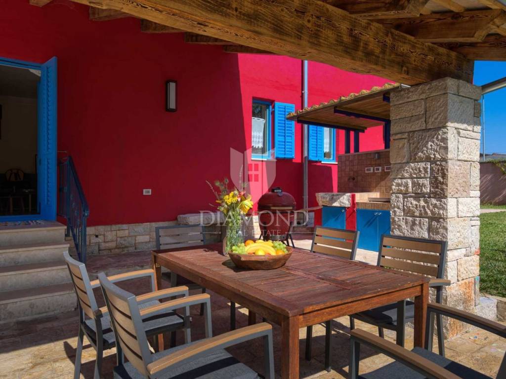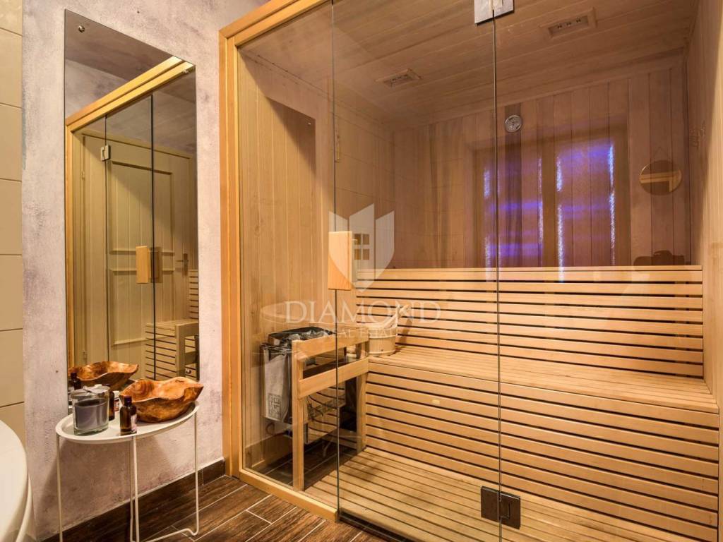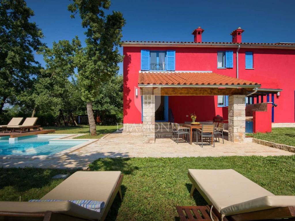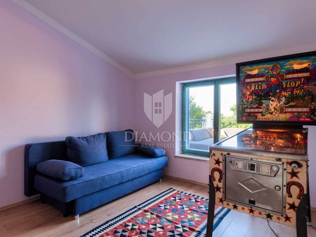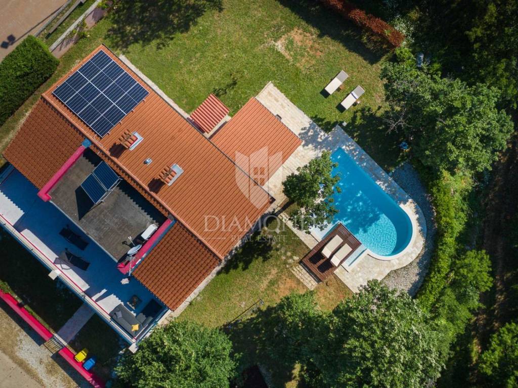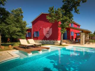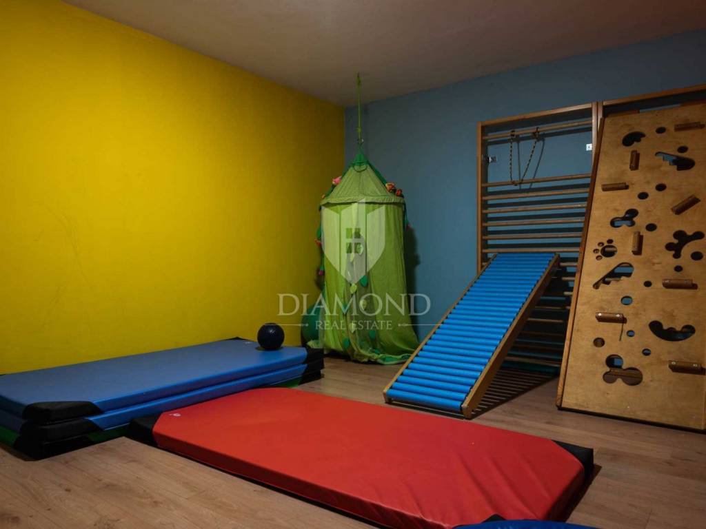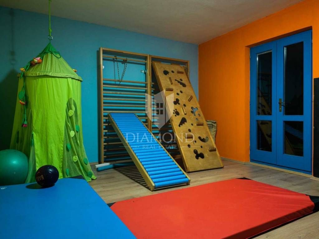 Barban, surroundings, house with swimming pool in an attractive location. Not far from the center of Barban, we are selling a house with a swimming pool with a total living area of 320m2 on a plot of 1000m2. The property is spread over two floors. On the first floor there is a sauna with a jacuzzi, two bedrooms with their own bathrooms, a guest toilet, a living room connected to the kitchen and dining room. The second floor contains two bedrooms, one of which has its own bathroom, and the other is currently used as a social room and has access to a spacious terrace with a view of nature. At the back of the property there is an entrance to a separate room that is used as a playroom. On the spacious garden there is a space for recreation, a children's playground, a heated swimming pool, a sunbathing area and a summer kitchen. The issue of heating and cooling was solved by installing air conditioners in the rooms and the living room, and the house also has underfloor heating. The property also has its own solar power plant that is connected to HEP. The house has a well-established rental business and provides you with an ideal investment for tourism in the short term, but it is also ideal for a peaceful family life. All necessary facilities for life are within walking distance.
