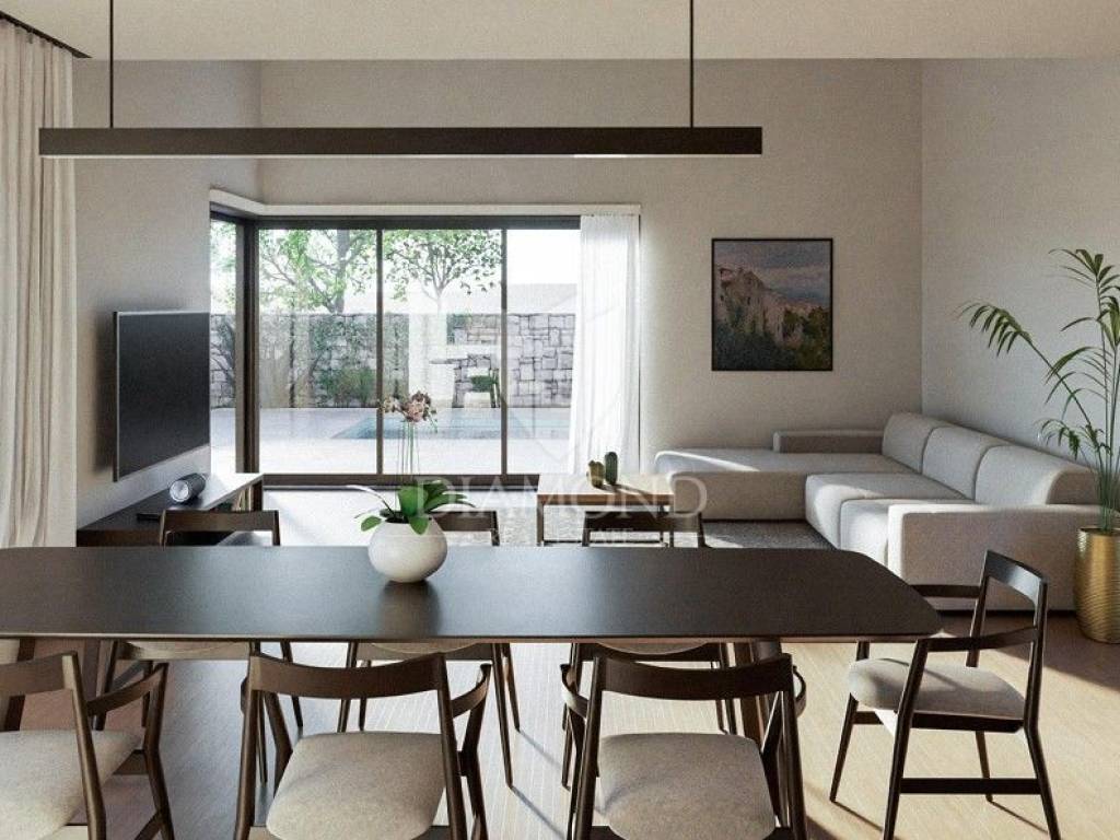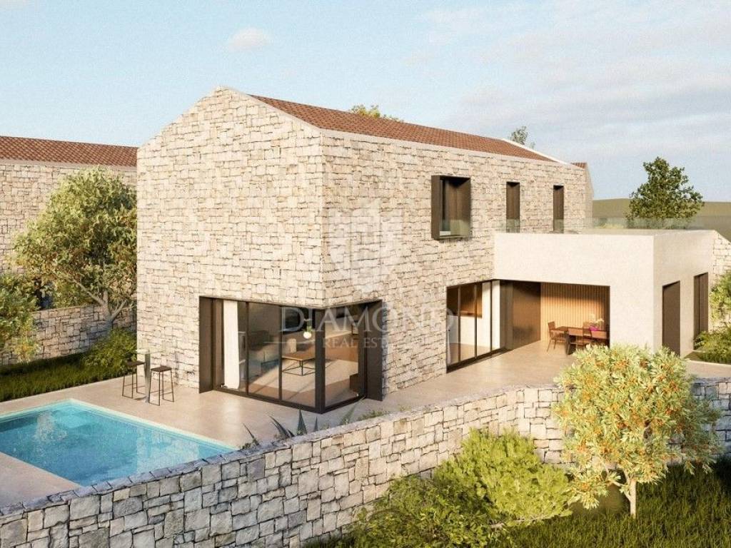 Projekt nudi prostranu kuću od dvije etaže. Prizemlje je dom dnevnom boravku povezanom s kuhinjom i blagovaonicom, spavaćoj sobi, kupaonici i WC-u. Iz dnevnog boravka izlazi se na natkrivenu terasu s ljetnom kuhinjom, sunčalištem i bazenom. Na katu se nalaze dvije spavaće sobe, kupaonica, praona rublja i nenatkrivena terasa.