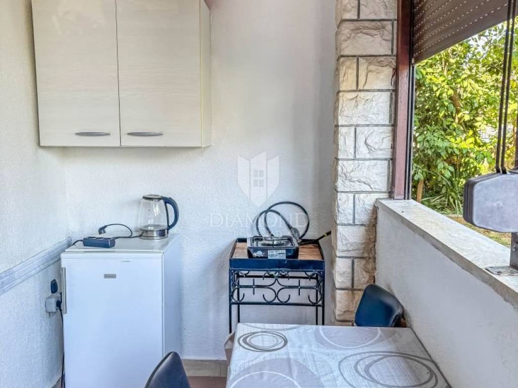 This rooms located on the ground floor of an apartment house with its own yard. The rooms have its own entrance and extends over 46m2. Each consists of an entrance hall, a bathroom and a bedroom with a window. The rooms have a separate entrance and is accessed through a covered loggia each of 10m2 where there is a summer kitchen. With an adequate renovation according to the buyer's wishes, this property can be transformed into a beautiful studio or even a ground floor apartment just 20 steps from the beach and the promenade.