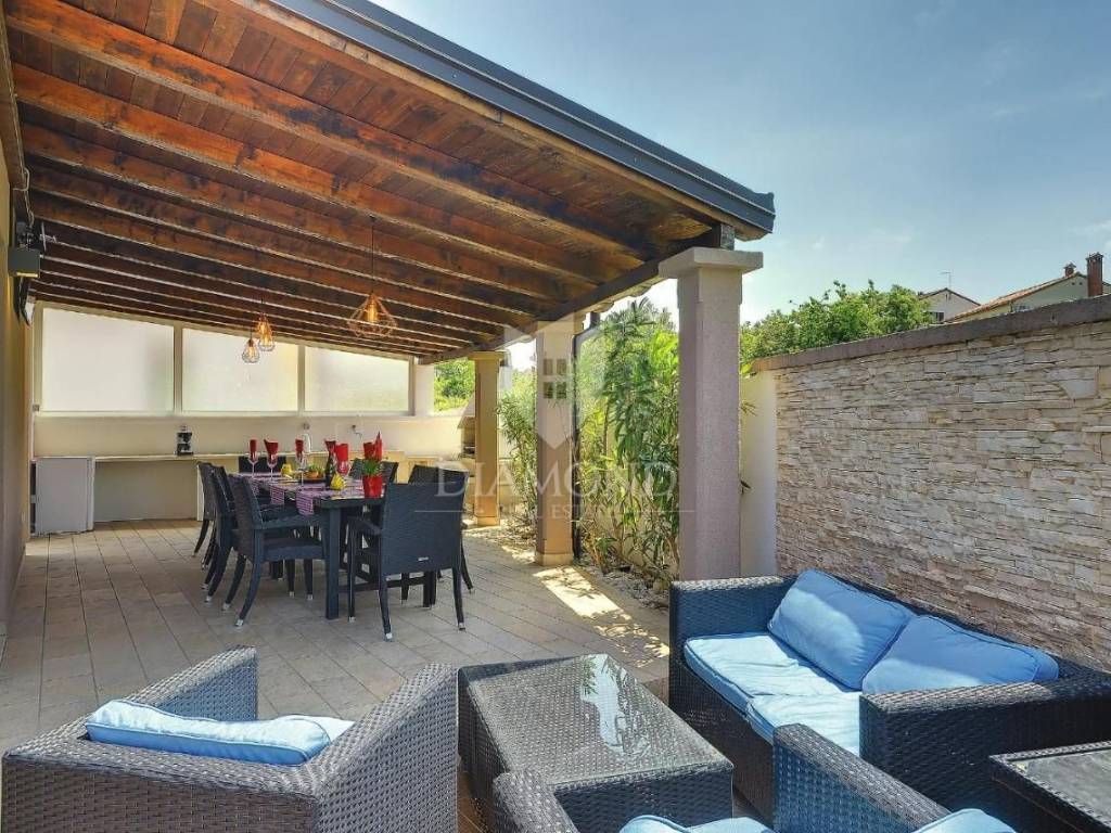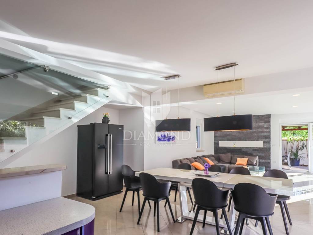 just a few minutes from Rovinj, a top tourist destination that has been attracting visitors from all over the world for years with its rich offering of entertainment and cultural content. This holiday home is located in a quiet street, surrounded by family homes and holiday houses.