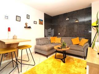 The apartments are being sold fully furnished with custom-made, high-quality furniture from 2023, allowing for immediate occupancy without additional investment. The property includes two parking spaces in the public parking area and two covered parking spaces in the private garden.