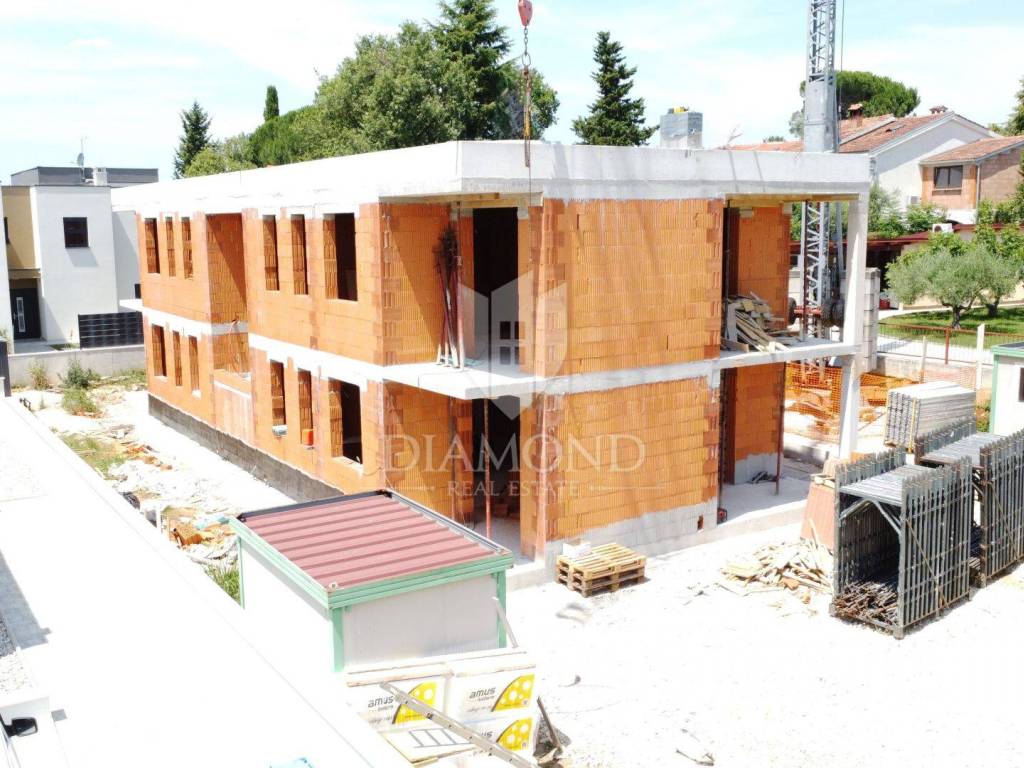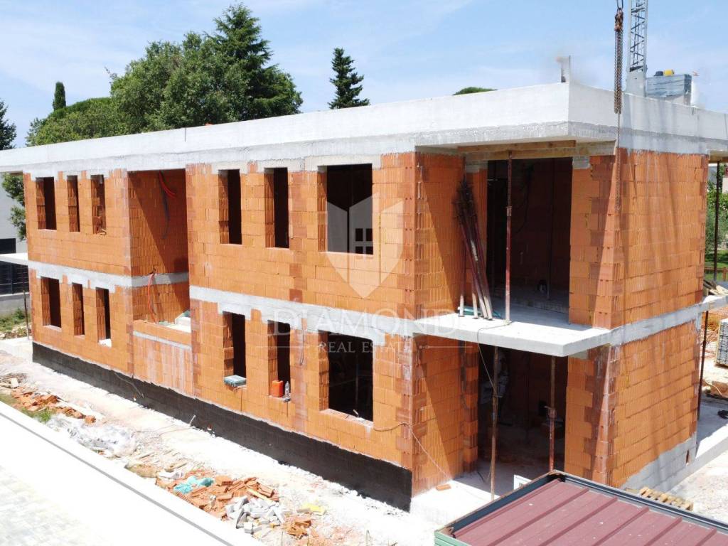 Poreč, excellent apartment on the first floor 1.5 km from the sea! In the immediate vicinity of the city center of Poreč is this modern building under construction with 4 residential units. The building is located in an attractive location a few minutes' drive from the first beautiful beaches and the city center. An apartment on the first floor is for sale. The apartment has an area of 65.86 m2. The apartment consists of an entrance hall, a kitchen with a dining area and a living room in one unit, two bedrooms and a bathroom. The living room opens onto a covered terrace. The apartment has one parking space, and there is the option of purchasing another parking space for an additional fee. The apartment will be heated and cooled with fan coil units on a heat pump, and electric underfloor heating will be installed in the bathroom. The floor coverings will be made of high-quality Italian ceramics, and at this stage of construction the future buyer can participate in choosing them. Aluminum electric shutters in anthracite color will be installed on all openings, and the insulation will be 10 cm thick. The planned completion of construction is by the end of 2025. The property is subject to VAT and the price is stated with VAT. The property can be an ideal investment for family life as well as for tourist rent.