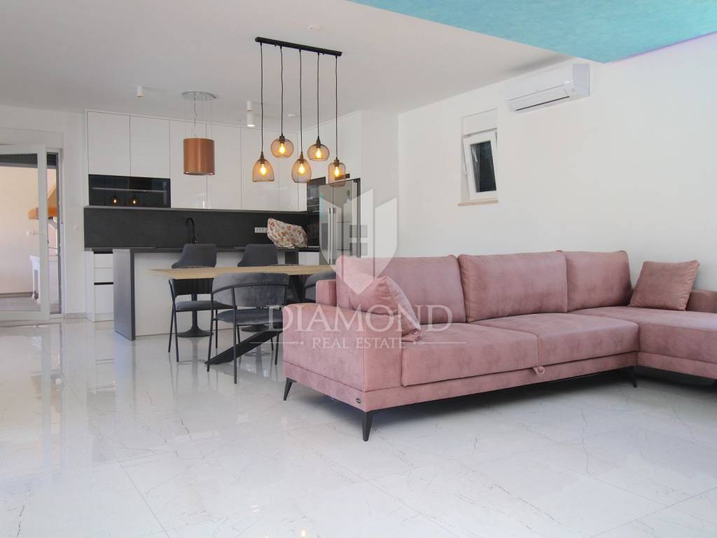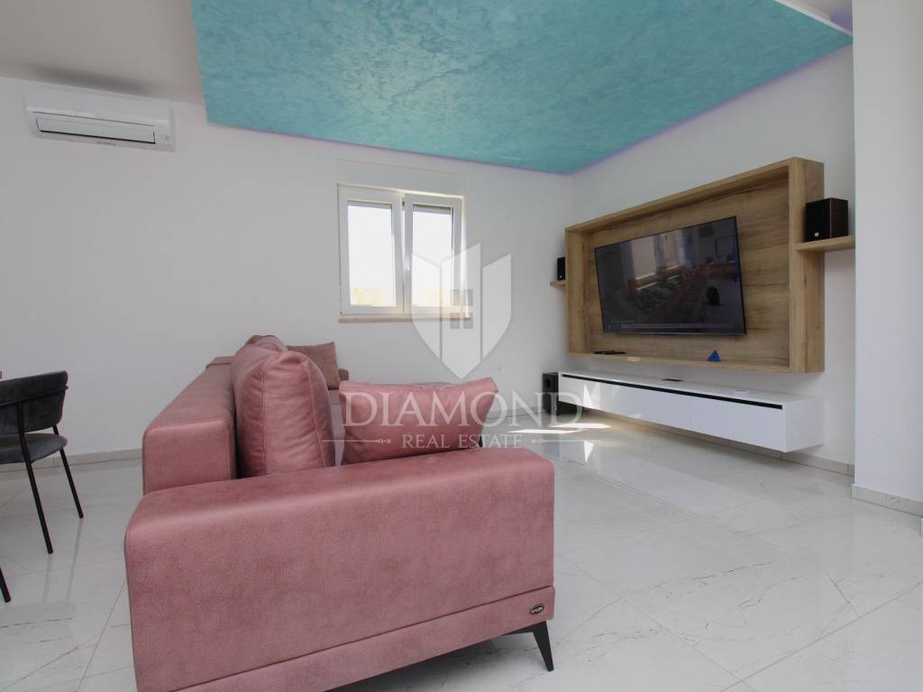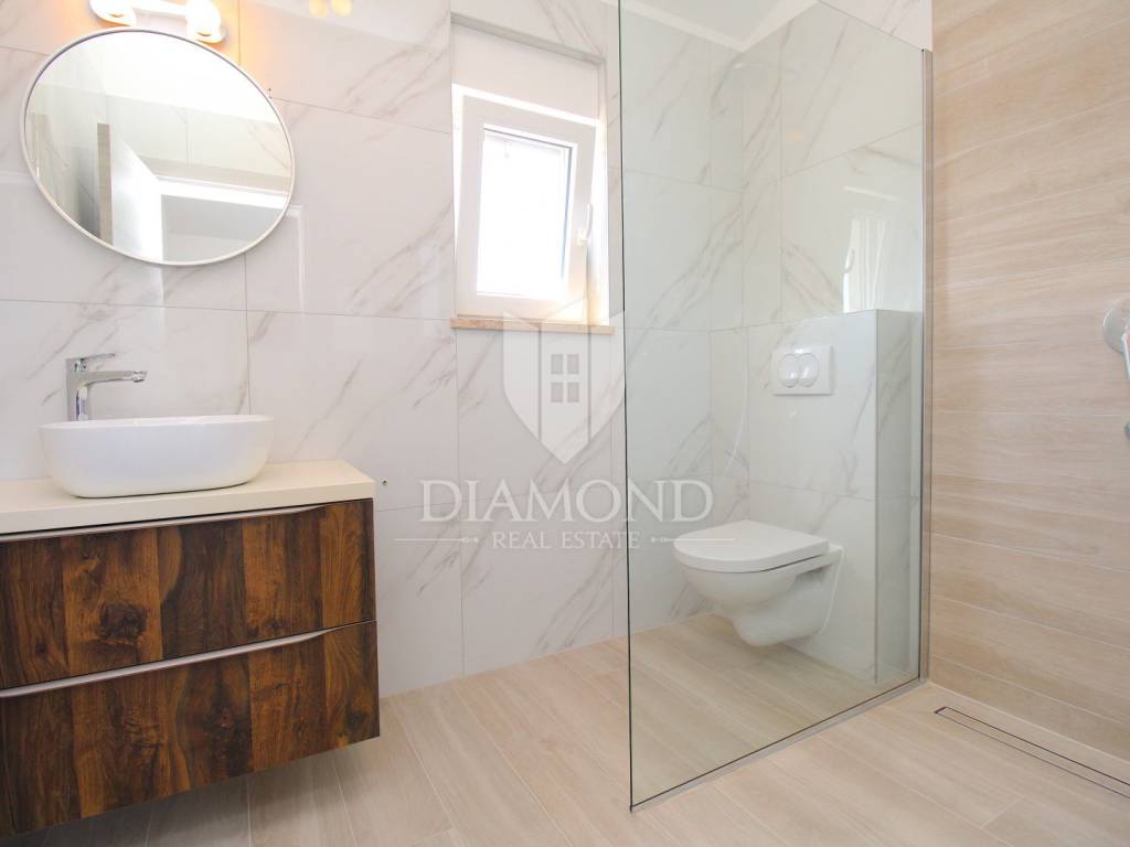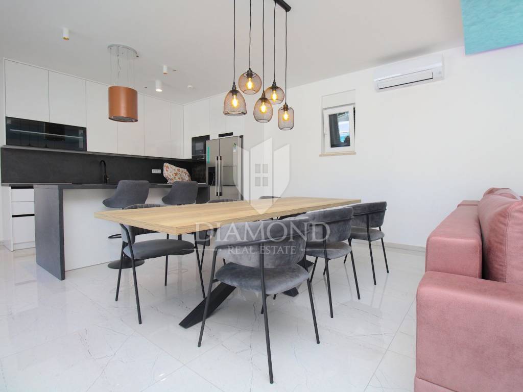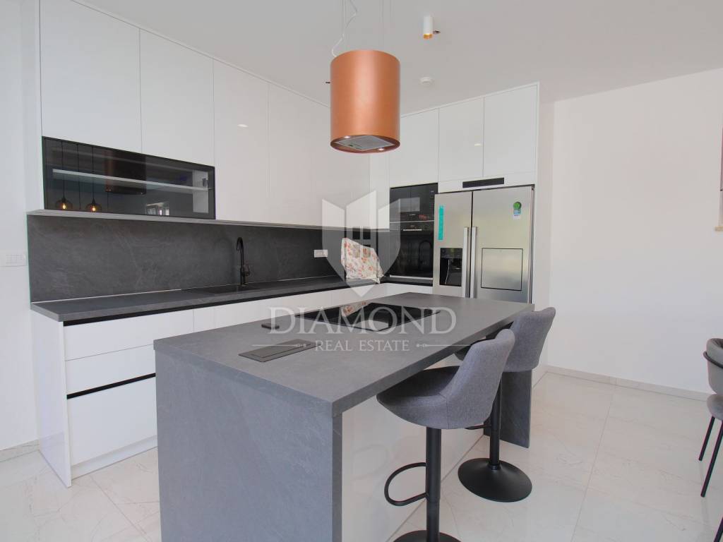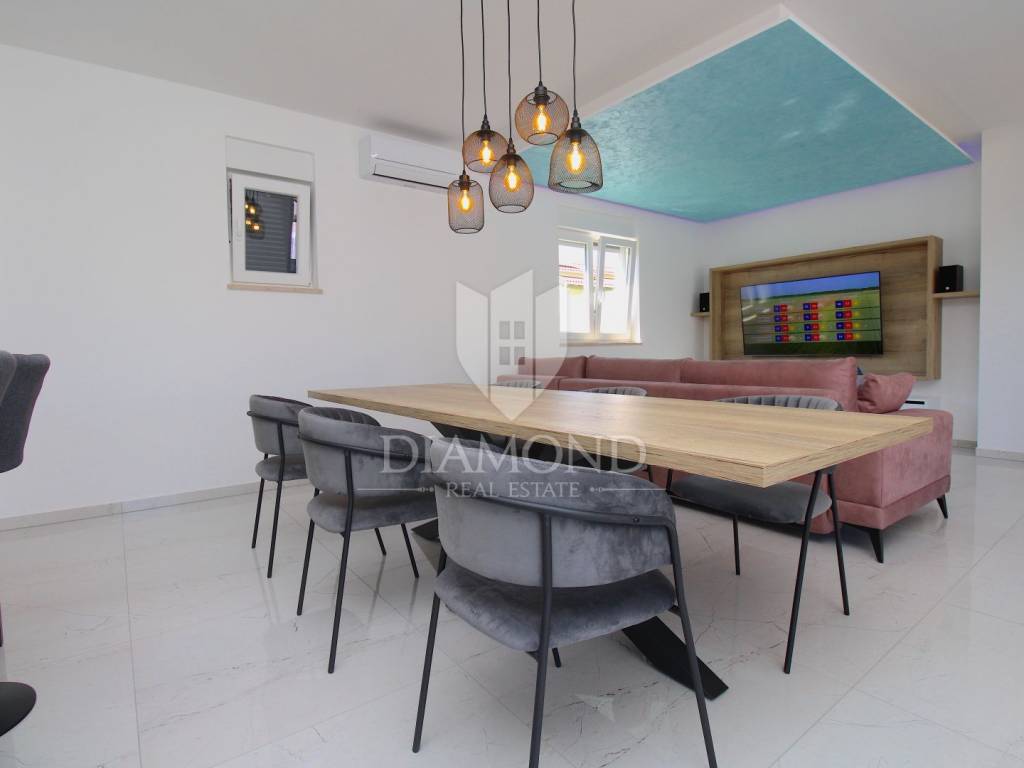 We are selling a new villa with a swimming pool in the area of Central Istria in the vicinity of Svetvinčent. The villa is for sale brand new, unused, equipped and furnished. The villa has a total area of 177 square meters and consists of 3 bedrooms with bathrooms, a large living area consisting of a kitchen, dining room and living room, an additional toilet and a large covered terrace with a summer kitchen. The villa is located on a large fenced plot of 919 square meters, where there is a covered parking lot for 3 cars, a children's playground, a lounge area, and the central part is occupied by a large swimming pool with an arranged sunbathing area. The villa has installed the most modern heating and cooling systems, video surveillance, pool automation, and all of the above is managed using a mobile application.