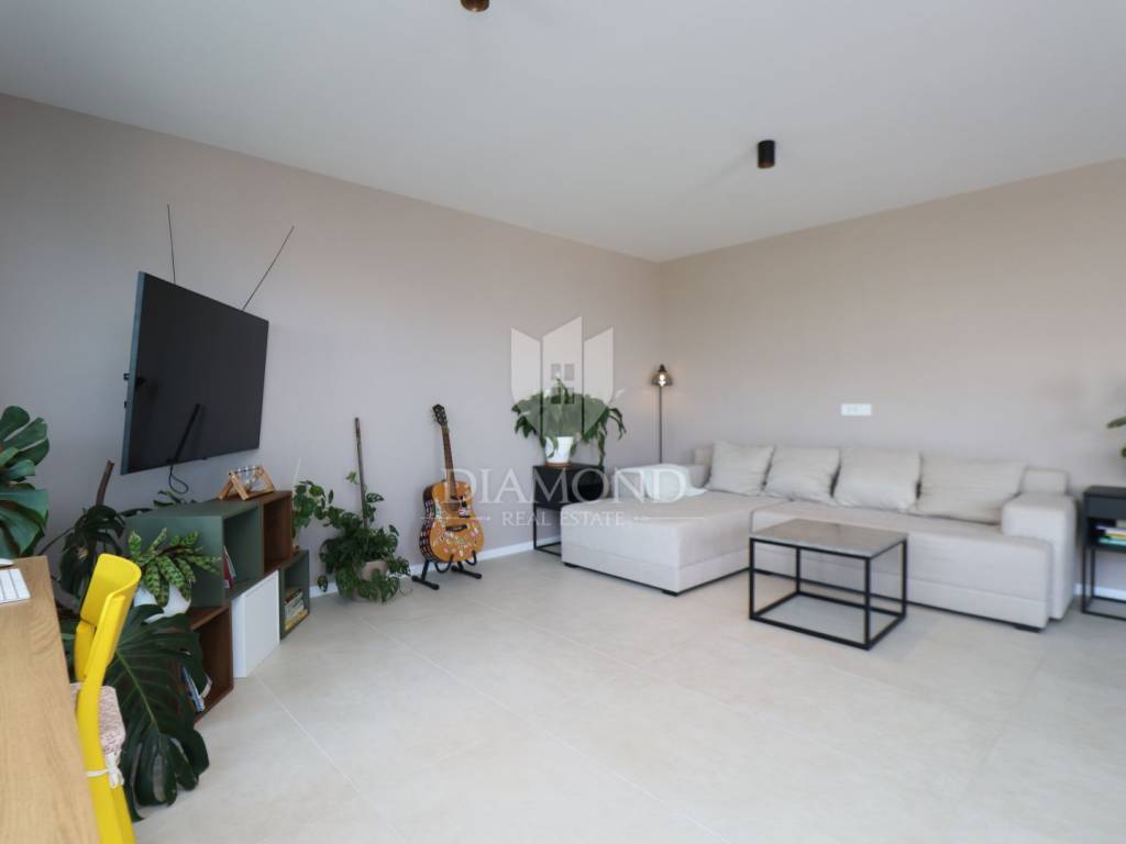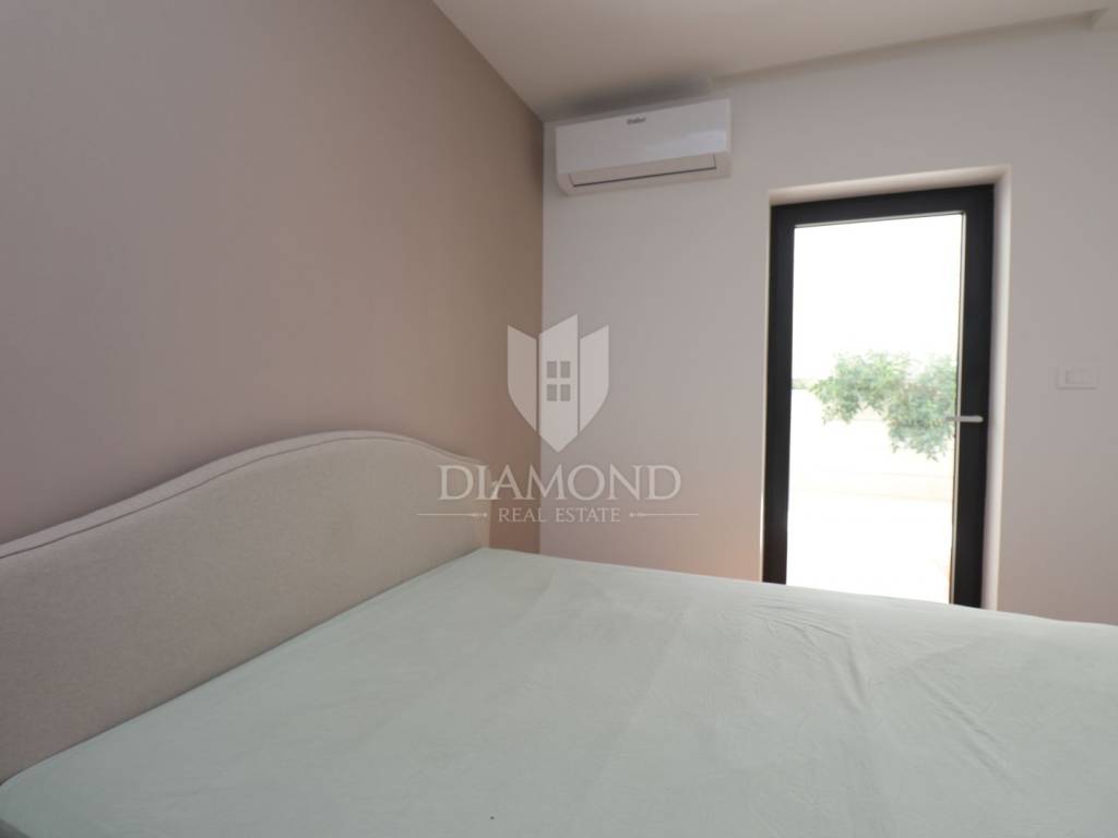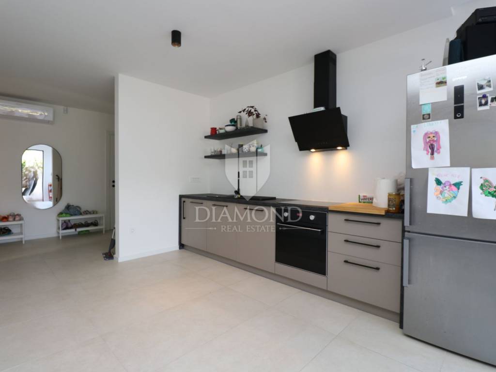 It is located on the ground floor of a newly built villa with a total of four apartments and a garage.
