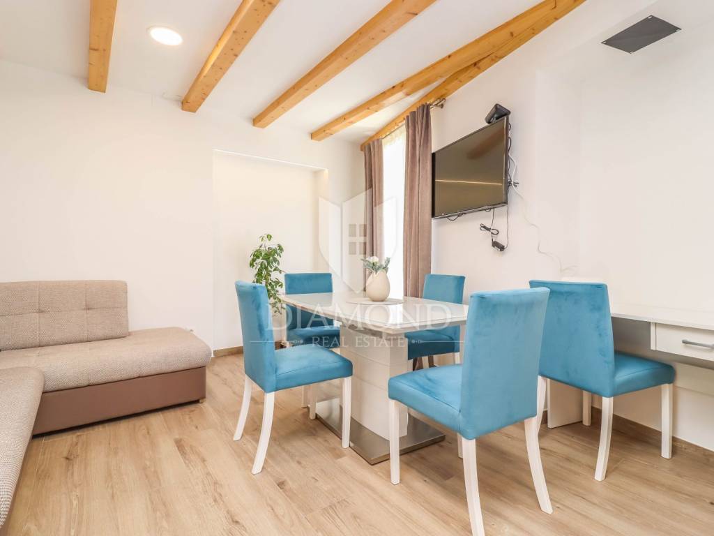 Fully renovated in 2019 with carefully selected materials, the apartment combines modern comfort with traditional Istrian charm — visible in details such as the restored wooden beams that preserve the soul of the old architecture.