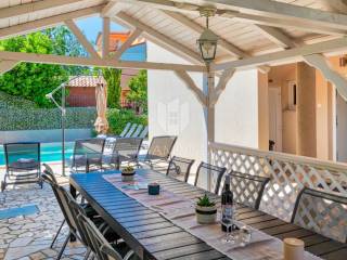 The house consists of six bedrooms, a fully equipped kitchen and two bathrooms. Two bedrooms have access to a terrace with a view of the garden and swimming pool. The house also has a sauna, ideal for relaxing all year round. The spacious yard and terrace provide enough space for socializing and spending time outdoors.