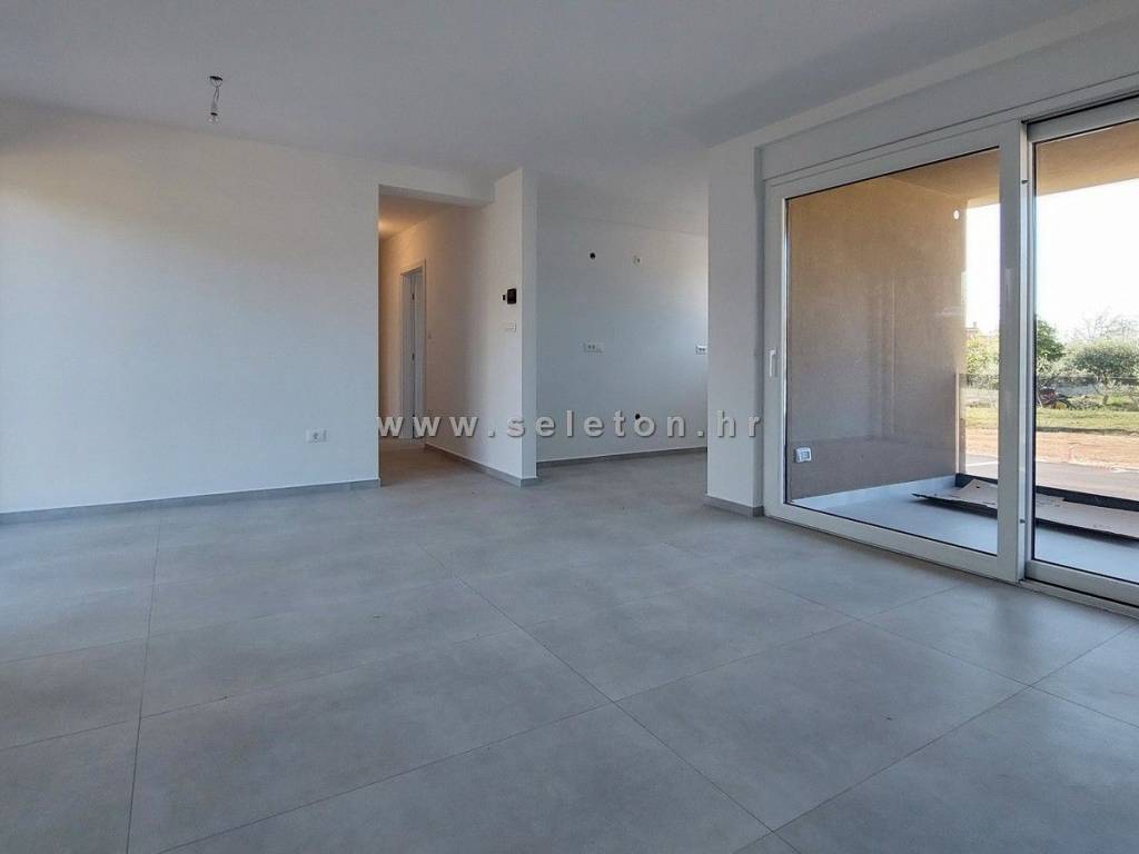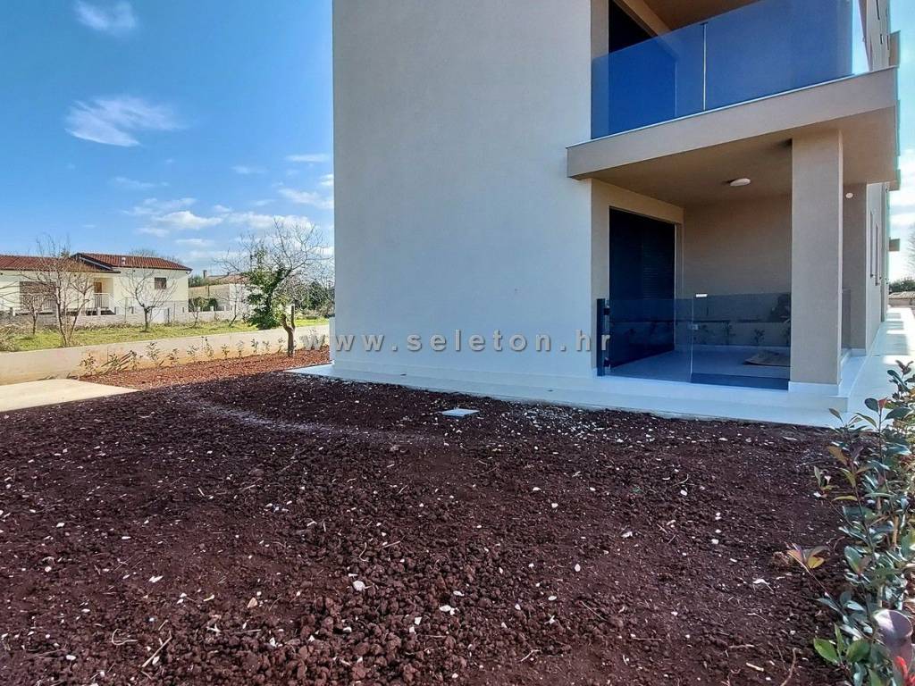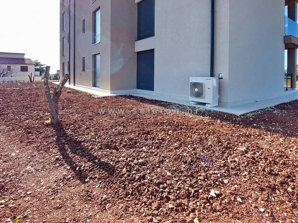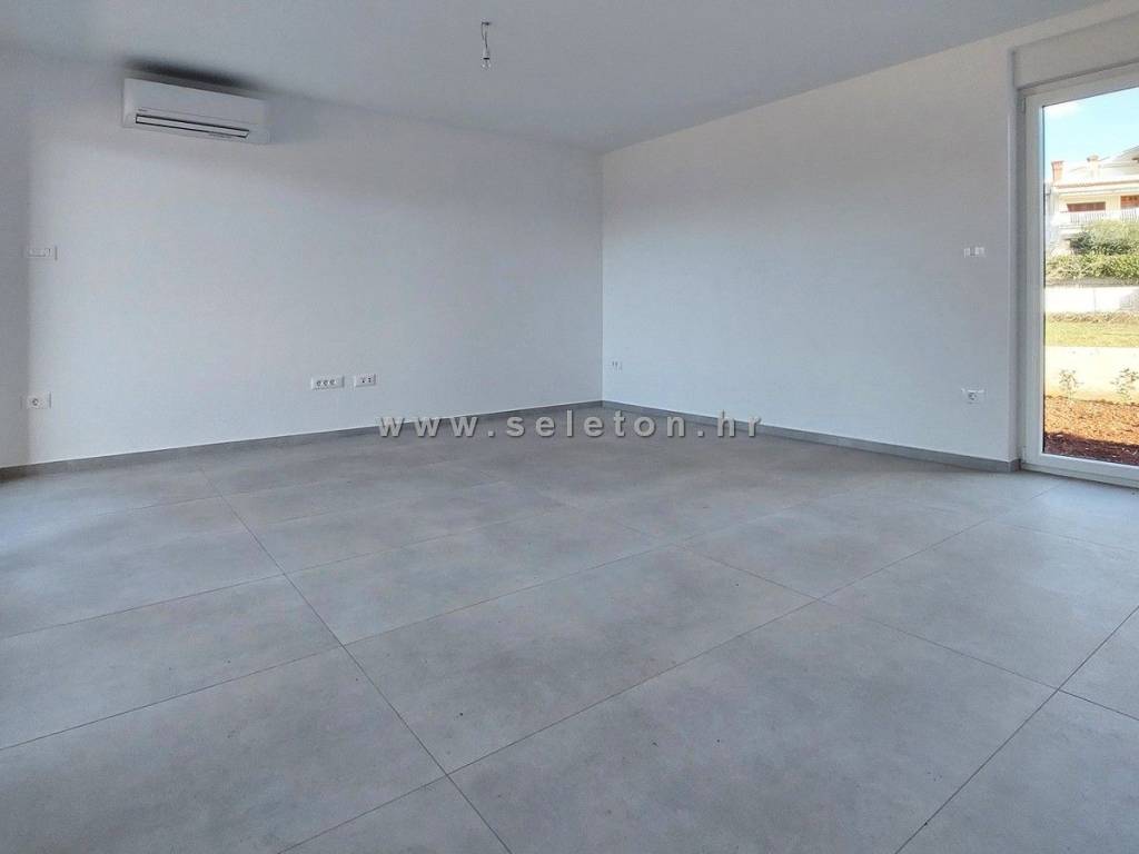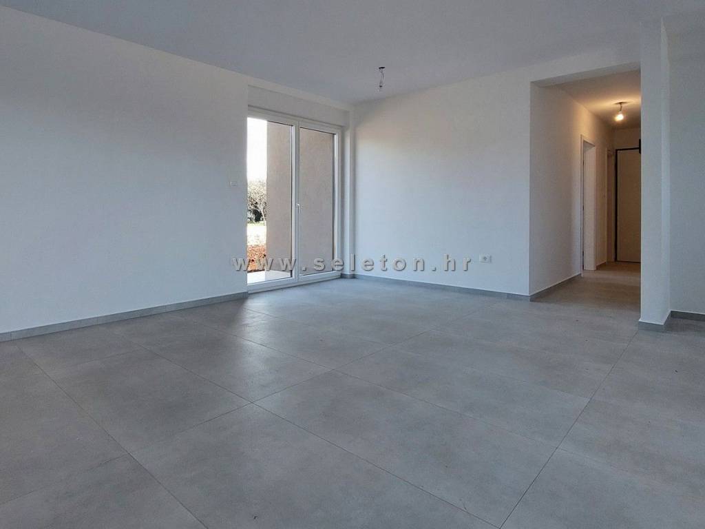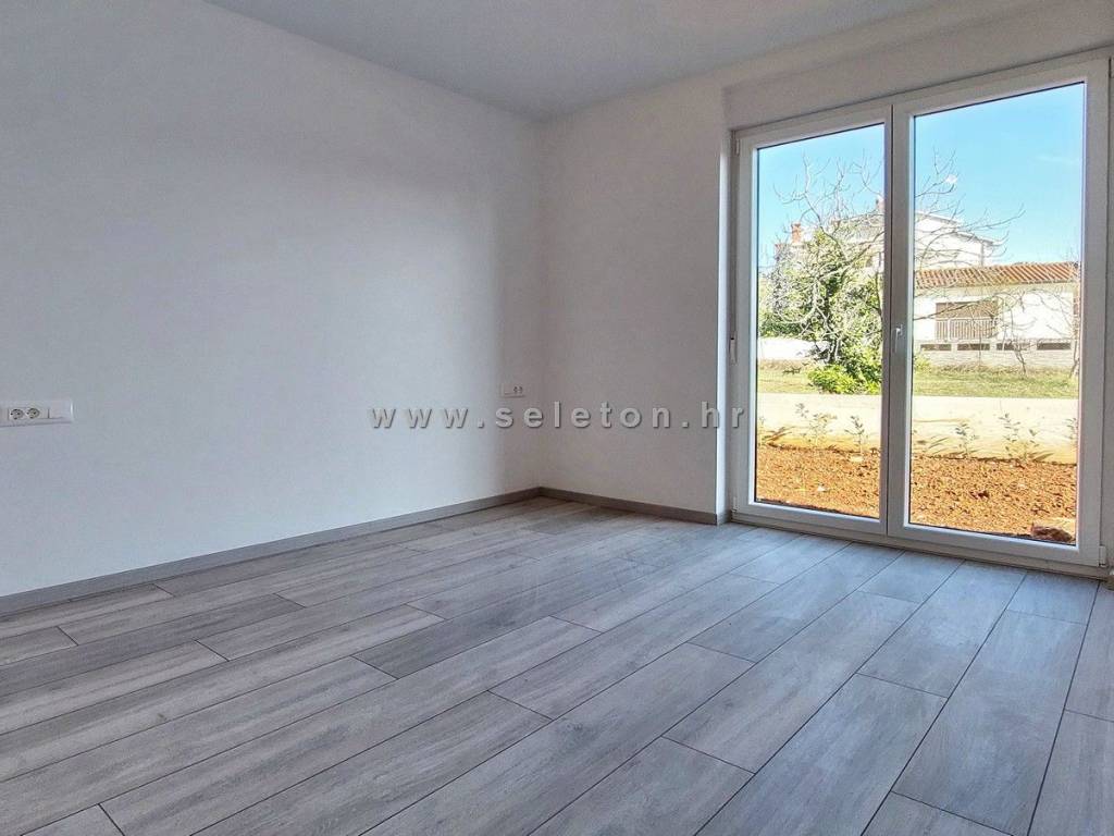 A new apartment for sale in the vicinity of Poreč, 67 m², consists of a living room, dining room, kitchen, hallway, covered terrace, two bedrooms, bathroom and guest toilet. The apartment is located on the ground floor of the building, has electric underfloor heating in the living area and bathroom, security entrance door, air conditioning in the living room and bedrooms, storage room in the basement of the building of 5 m², a private garden of 180 m² and two parking spaces in front of the building. The apartment is approximately 2.5 km from the sea and 9 km from the center of Poreč, in the village there are restaurants, cafes, a pharmacy and supermarkets.