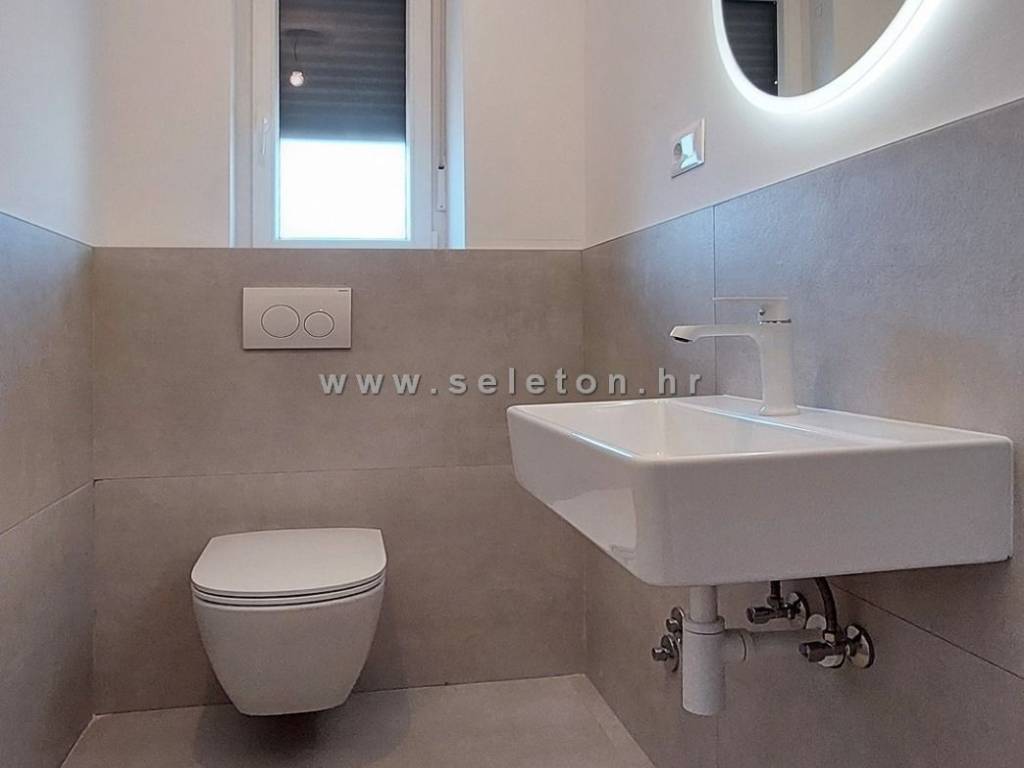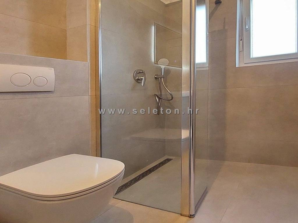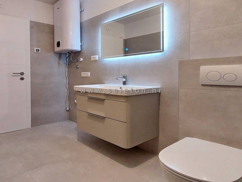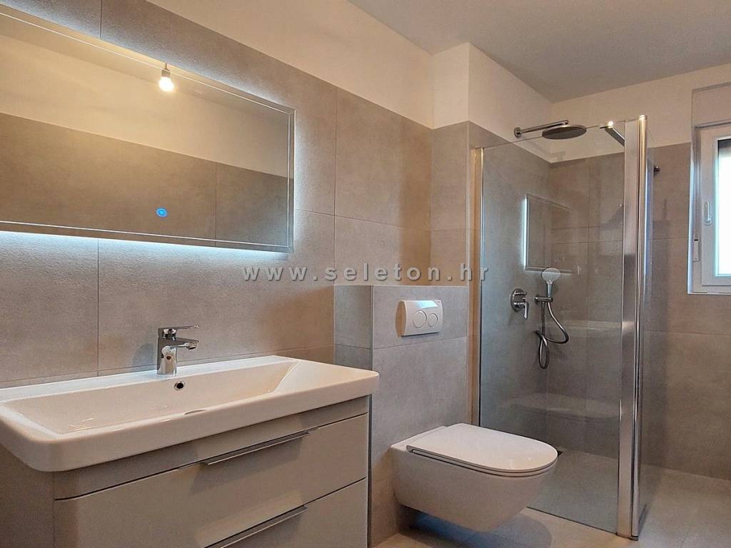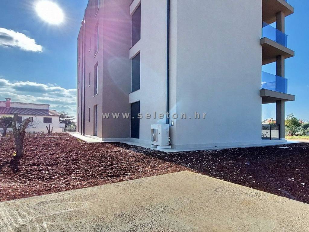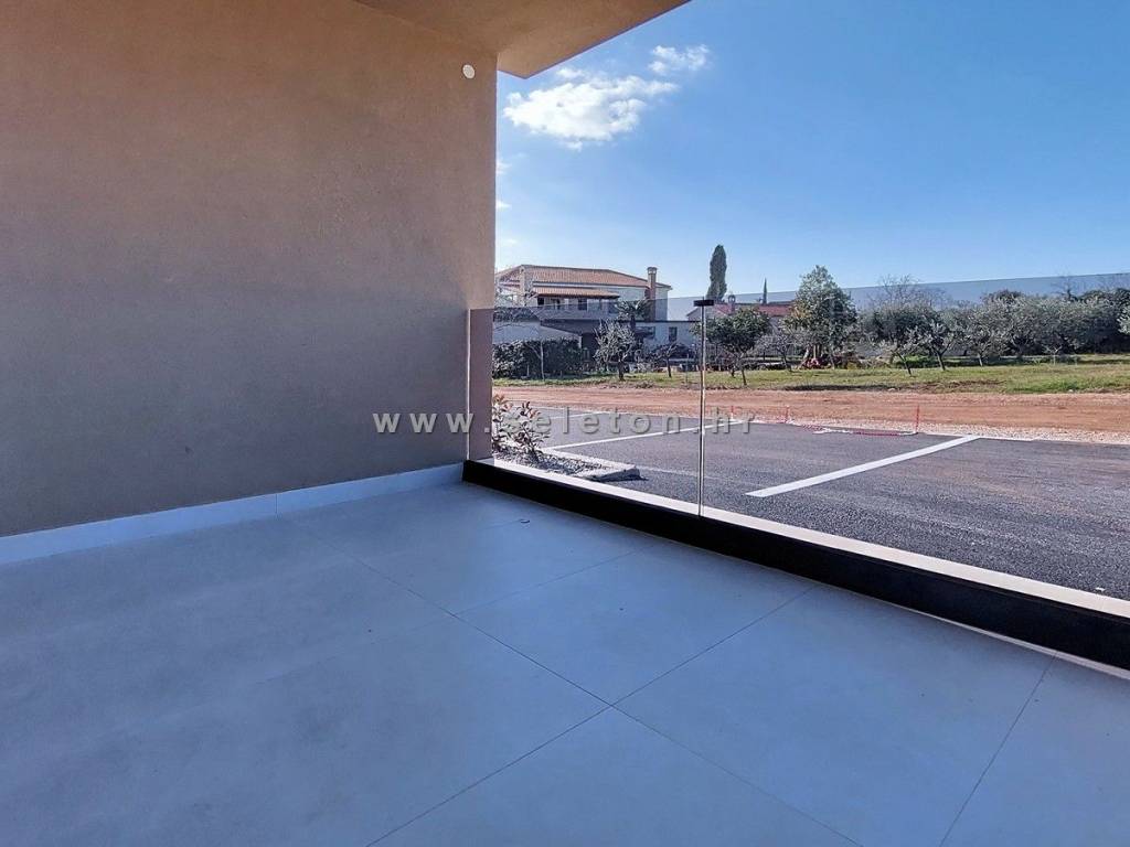 A new apartment for sale in the vicinity of Poreč, 67 m², consists of a living room, dining room, kitchen, hallway, covered terrace, two bedrooms, bathroom and guest toilet. The apartment is located on the ground floor of the building, has electric underfloor heating in the living area and bathroom, security entrance door, air conditioning in the living room and bedrooms, storage room in the basement of the building of 5 m², a private garden of 180 m² and two parking spaces in front of the building. The apartment is approximately 2.5 km from the sea and 9 km from the center of Poreč, in the village there are restaurants, cafes, a pharmacy and supermarkets.