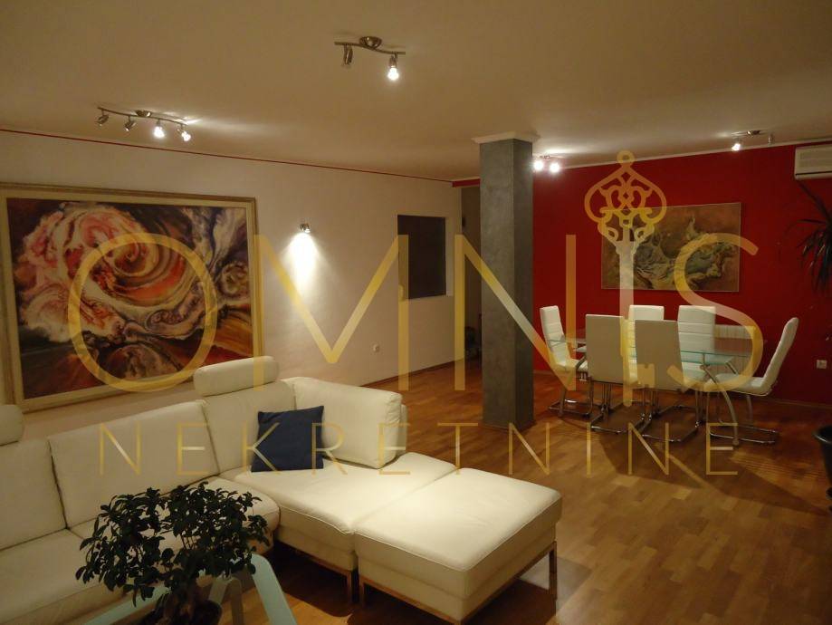 Iznajmljuje se 3S+DB stan na Martinkovcu u Villi. Stan je površine 170m2 i nalazi se na 1. katu. Kompletno opremljen i namješten. Sadrži se od tri spavaće sobe, dnevnog boravka, kuhinje s blagovaonom, tri kupaonice, tri balkona, hodnika i ostave i 2 parkirna mjesta. Grijanje na zajedničku kotlovnicu i klima uređaje. Cijena je 1500 € plus režije, pologa u visini jedne najamnine.