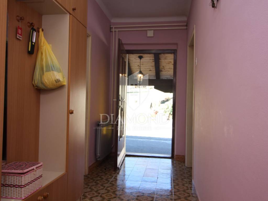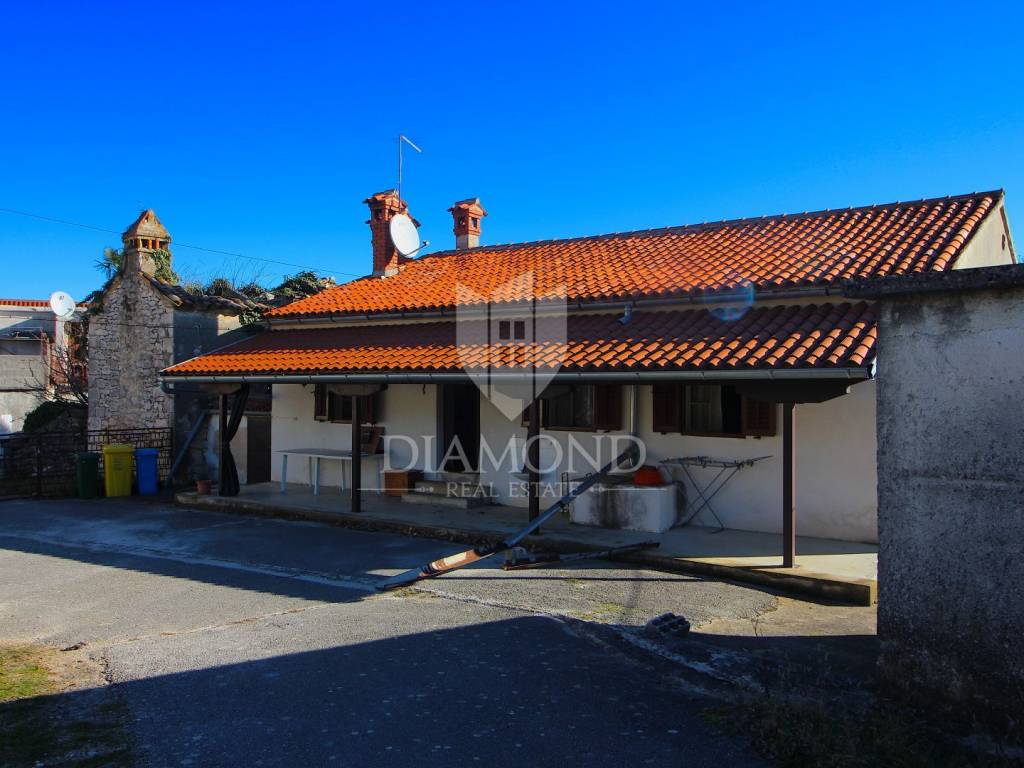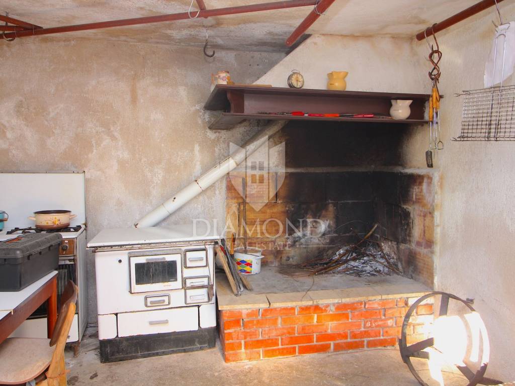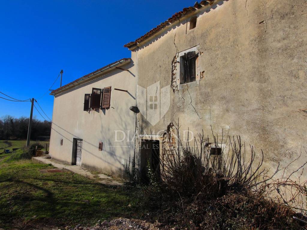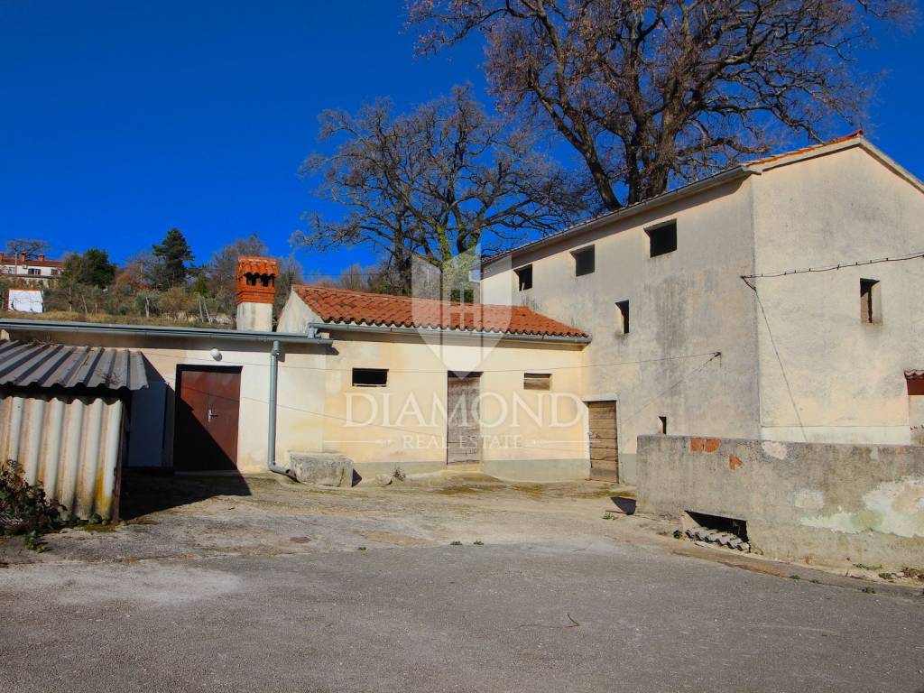 Near the town of Pićan, there is a property with two stone houses, garages, taverns, storage. The total area is 340 square meters. The house, which is habitable, has two bedrooms, living room, kitchen, dining room, bathroom, storage room and a covered terrace. In the basement of the house there is a tavern of 48 square meters. The house is furnished, with oil central heating. The second stone house is not habitable, it needs to be renovated, and consists of ground floor and first floor. The total land on which this property is located is 3200 square meters. Located in nature, a very quiet location with a beautiful view of the greenery of nature, can be an ideal property for anyone who wants to engage in tourism or for family life in a small village.