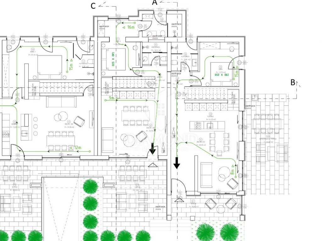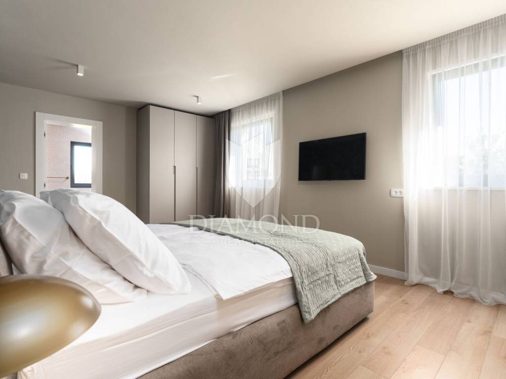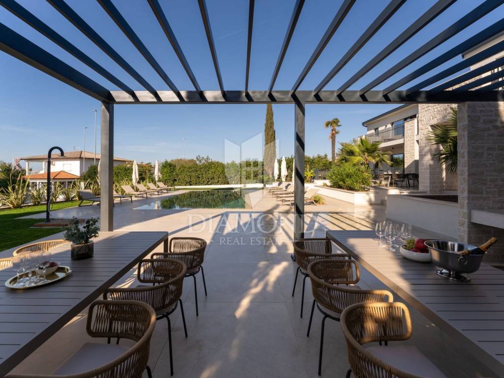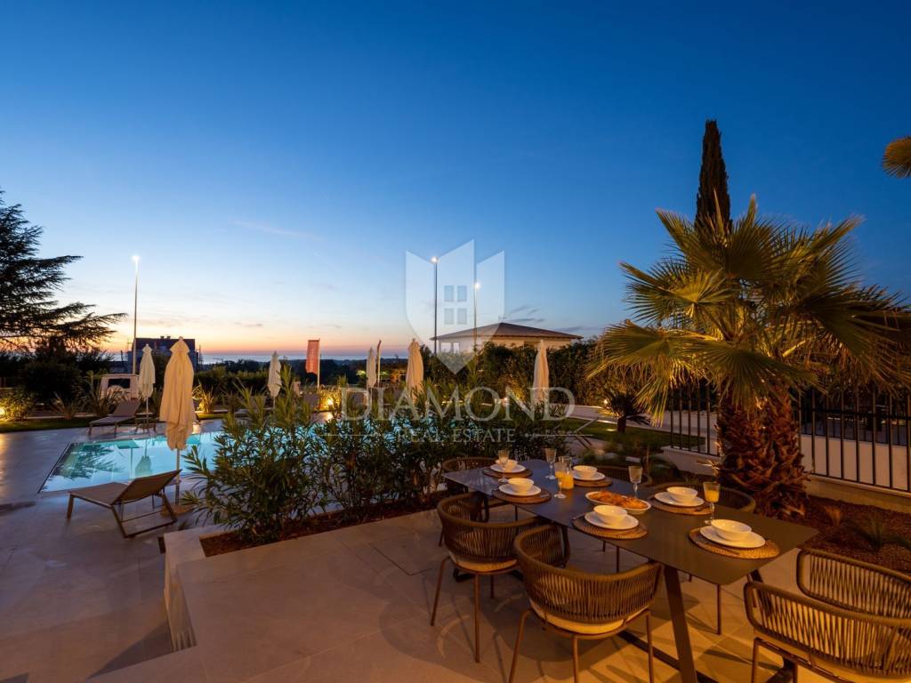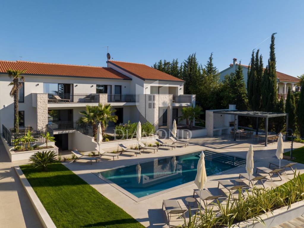 An impressive villa located in the heart of Poreč, in the most sought-after location offering a spectacular view of the Adriatic Sea. This property is a blend of sophisticated design, premium materials and impeccable style, providing a dream living space. With a total of 683 m2 of living space divided into three spacious residential units, each with a unique design and carefully selected details, this property takes your breath away with its luxury and functionality. The interior spaces are carefully decorated with top quality materials and furniture. Spacious living rooms, elegant dining rooms and kitchens equipped with the most modern equipment make the domestic space spectacular. The apartments boast private terraces or balconies, providing space to enjoy the outdoors and beautiful views of the surroundings. A fully equipped kitchen with the latest equipment and an elegant dining room create the perfect ambience for cooking and enjoying gastronomic delicacies. Impressive bedrooms provide privacy and comfort. Each room has its own bathroom equipped with top quality sanitary ware. The spacious terraces and gardens around the villa provide a private outdoor paradise. The 40 m2 swimming pool creates a feeling of luxury and is perfect for relaxing in the sun and overlooking the sea. The villa is heated via underfloor heating on a heat pump and via air conditioning in every room. Advanced security systems guarantee complete privacy and a sense of security. This villa not only offers a home, but creates a life experience where every moment becomes special. This luxury villa in Poreč has the potential to meet the different needs of new owners, whether it is a family home, a private residence or an investment with summer rental options.