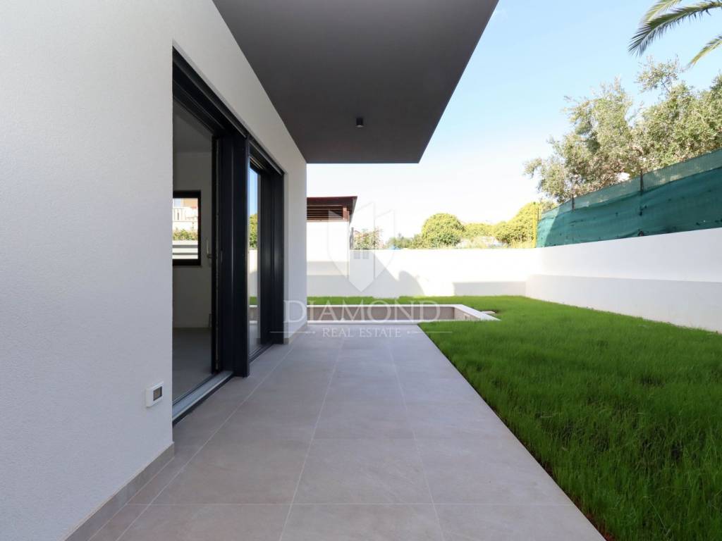For sale is a beautiful apartment in Premantura, located just 500 meters from the sea and the beaches of Cape Kamenjak, known for its crystal-clear waters and unspoiled nature. The apartment is situated on the ground floor of a modern new building with a total of six units, in a peaceful area yet close to shops, restaurants, and all essential amenities. This location offers the perfect balance of privacy, tranquility, and convenience — ideal for permanent living or holiday enjoyment.