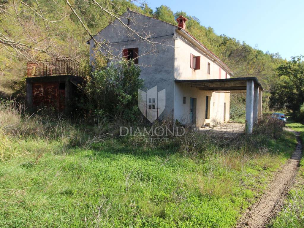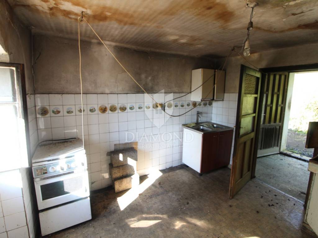 The house is located in a small Istrian village about 20 kilometers from the town of Labin. The house is quite old and requires complete adaptation, the best solution is to demolish it and build a new one in these dimensions. In addition to the house, there are two additional houses that served as auxiliary buildings and can also be converted into something according to your wishes. The house is located at the end of the road and offers fantastic privacy and a beautiful view of the entire fertile valley of the enclosed field. What adorns this property is, watch out, over 30,000 square meters of land, forest, fields and what not, because who will know what you have in 30,000 square meters. You only need 2 days to walk around your property. So you can do whatever you want, nobody is around, you are alone and do whatever you want. This is a great investment for not so much money and should be used fully and immediately.