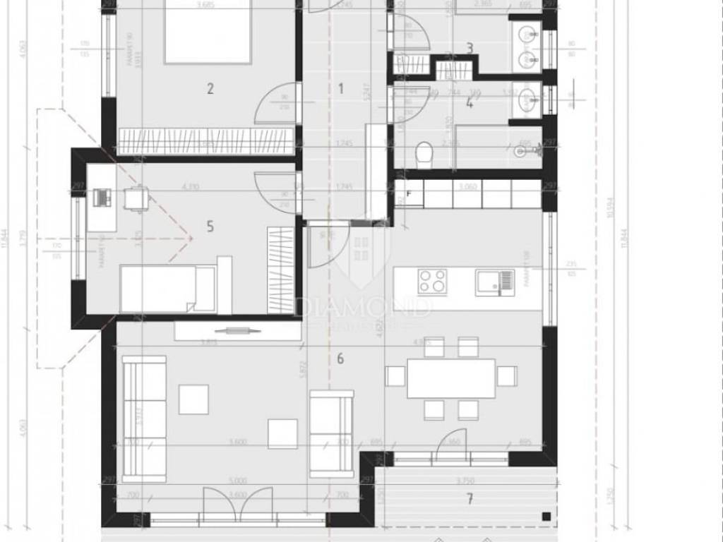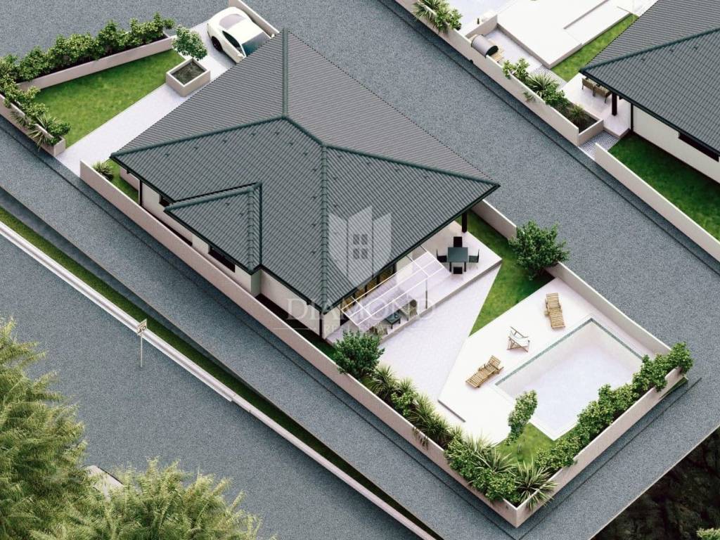 An excellent house under construction is located in a quiet neighborhood just a few minutes drive from the city center. The house has 108 square meters, which are arranged in a super cozy ground floor. Through the front door on the left are two bedrooms, while on the right are two bathrooms, so as to avoid the crowds in the morning hours. The hallway leads you to a fantastic open space with a kitchen with a dining room and a living room, from which you can exit to the outdoor terrace and outdoor pool. The house is prefabricated and the best materials available on the market are used, which is reflected in lower heating and cooling costs.