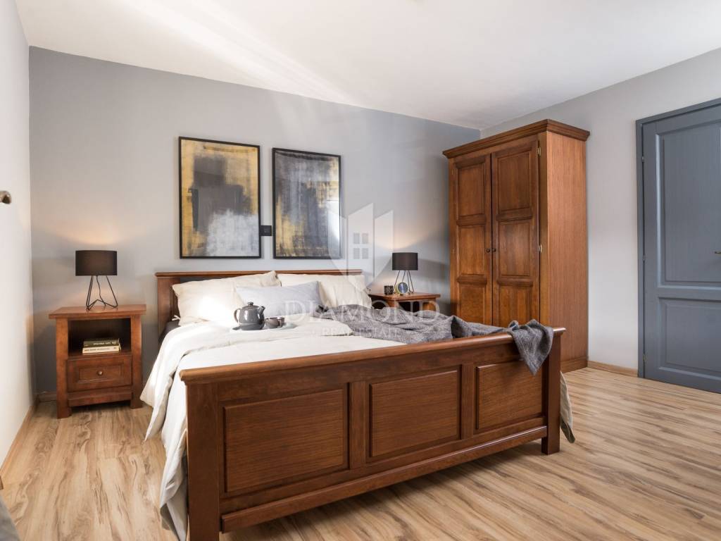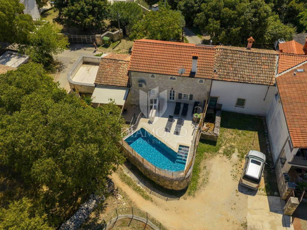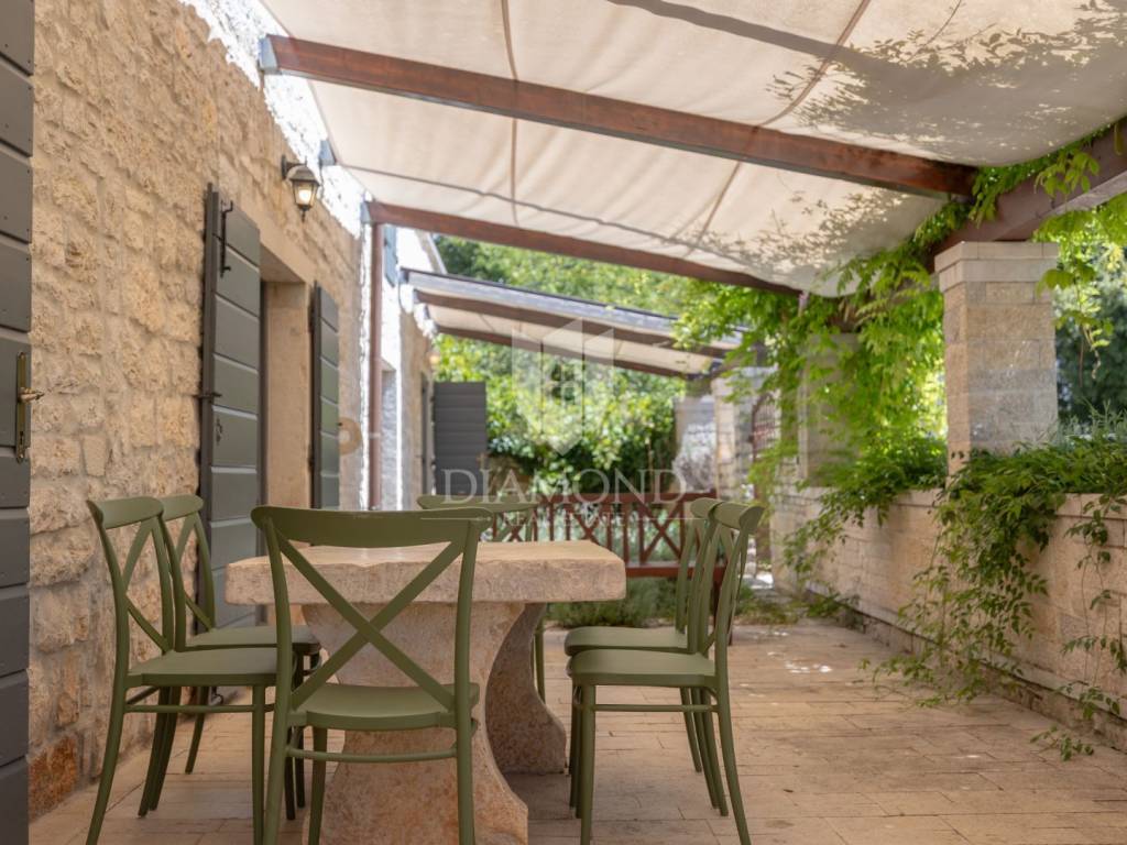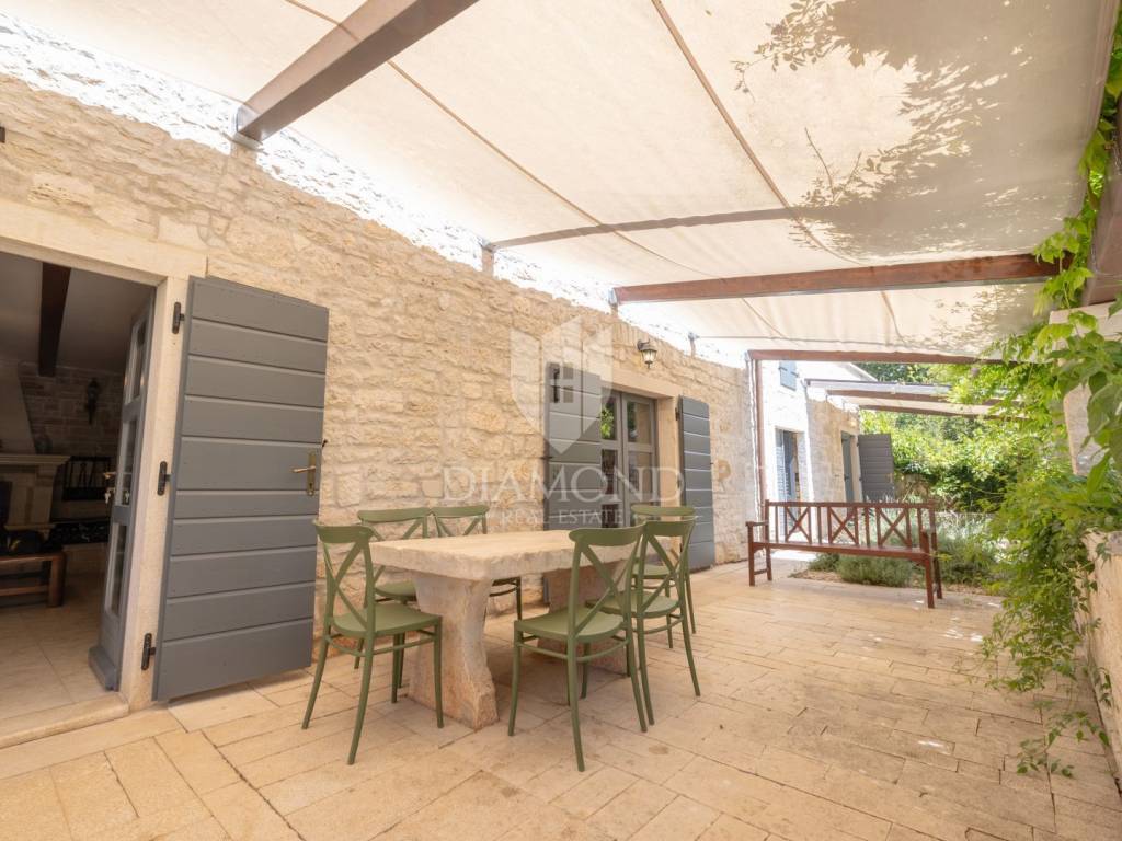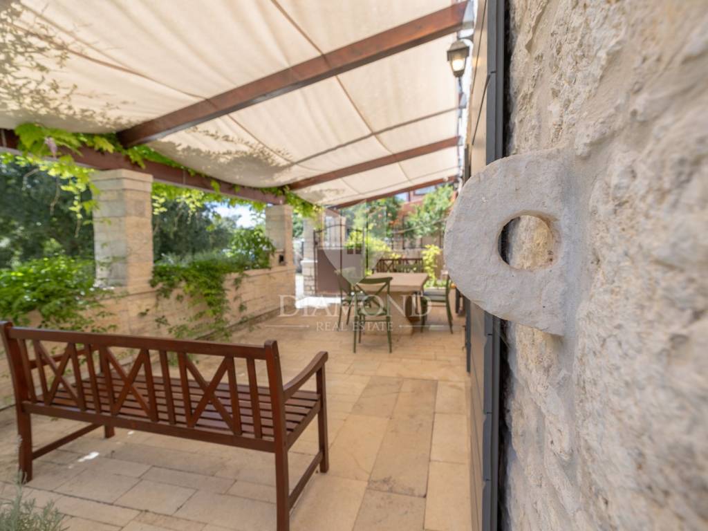 In a peaceful and authentic Istrian village, just a short distance from the stunning town of Rovinj, a spacious stone house is for sale, offering a perfect blend of traditional Istrian charm and modern comfort. The house spans 200 m² of living space and was completely renovated in 2013. During the renovation, a new roof and structure were installed, reinforced concrete floors were built, and all electrical, water, and central heating installations were renewed. New flooring, wall coverings, windows, and modern furniture were added, while the house was equipped with air conditioning and a stone fireplace in the living room, enhancing its warmth and coziness.