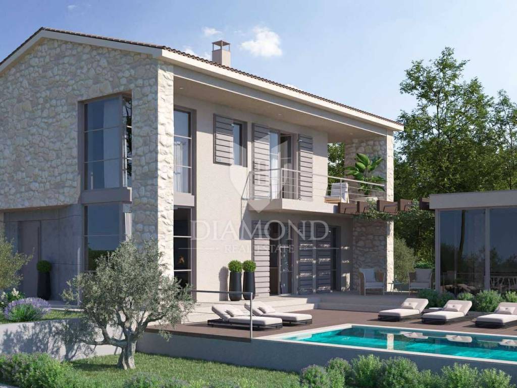 Projektirana kuća nudi savršen spoj tradicionalne arhitekture i suvremenog komfora. Raspored prostorija i bazen čine je idealnom za odmor ili stalni boravak.