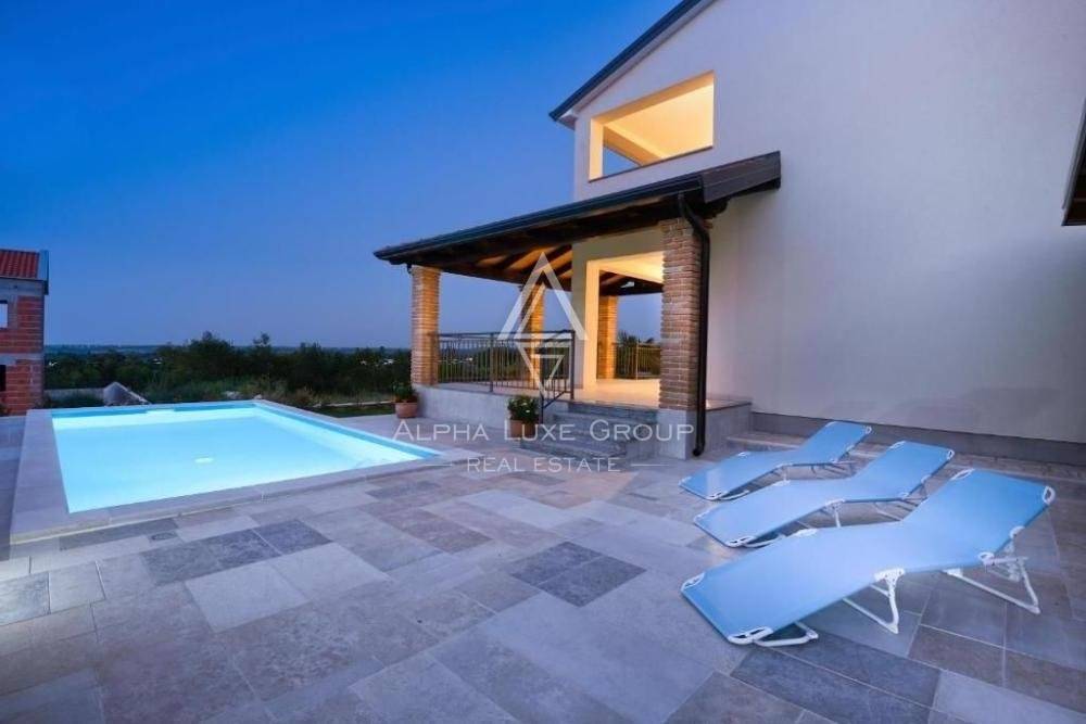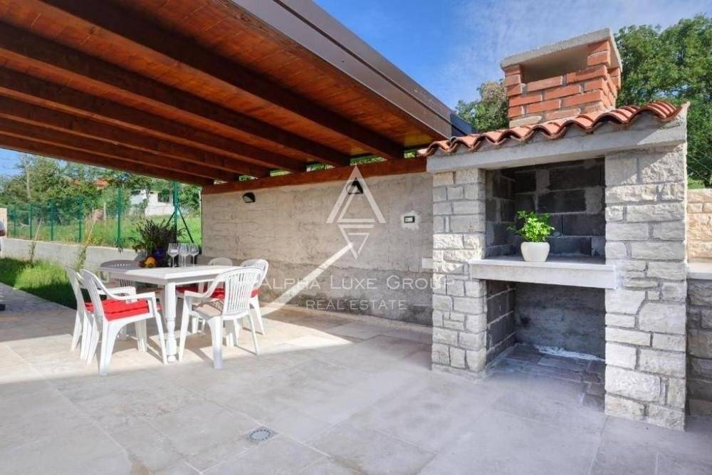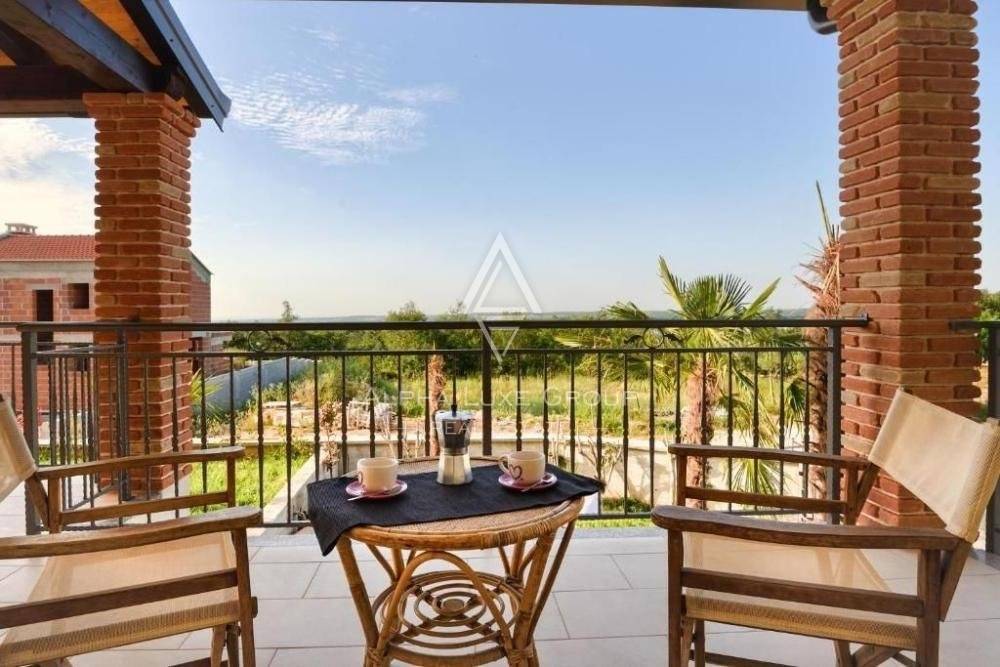 A beautiful house with a swimming pool accented with stone elements is available for sale in a small village on a hill just a few minutes from the tourist center of Poreč.
