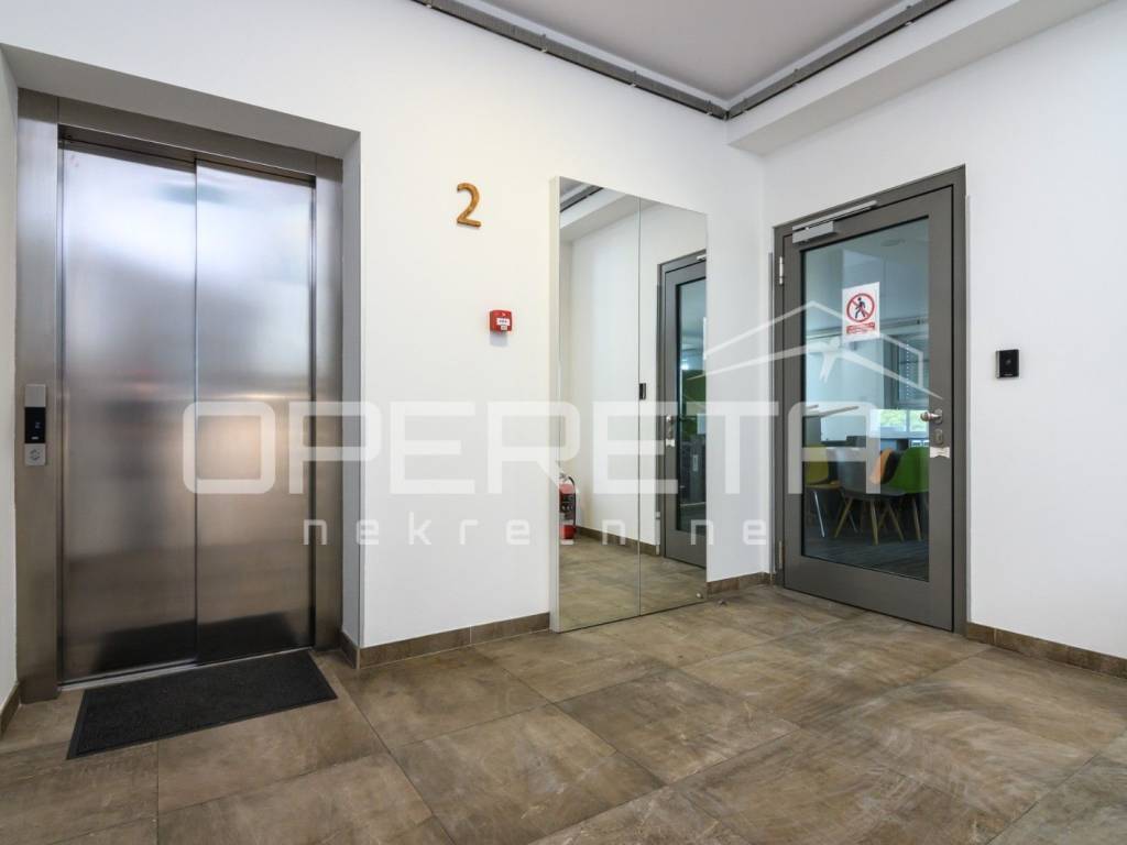U ponudi su moderni uredski prostori za zakup u poslovnoj zgradi u Novom Zagrebu. Prostori se nalaze na drugom katu zgrade s liftom i pristupom za osobe s invaliditetom, ukupne površine 637 m2. Kat je podijeljen u dvije odvojene cjeline sa zasebnim ulazima, što omogućuje zakup pojedinačnih cjelina ili cijelog kata. Prva cjelina površine 220 m2 sastoji se od recepcije i šest ureda, dok druga cjelina od 417 m2 obuhvaća prostrani open space i tri odvojena ureda. Kuhinja i sanitarni čvorovi nalaze se zajednički na katu. Prostor je opremljen razvedenom IT mrežom i internetom. Zgrada je osigurana čuvarskom službom, alarmom, kontrolom pristupa i video nadzorom. Moguće je zakupiti parkirna mjesta u garaži ili na vanjskom parkiralištu. Lokacija je odlično povezana gradskim autobusnim linijama, a u skoroj budućnosti i tramvajem. Ovaj uredski prostor predstavlja idealno rješenje za IT tvrtke, konzultantske i financijske djelatnosti, projektne i kreativne timove te kompanije koje traže kvalitetan, siguran i fleksibilan ured u Novom Zagrebu.