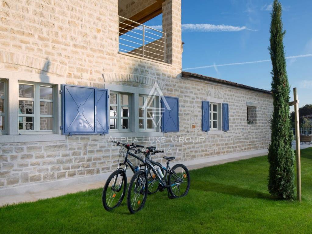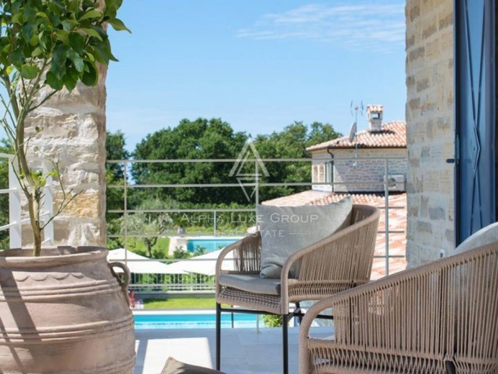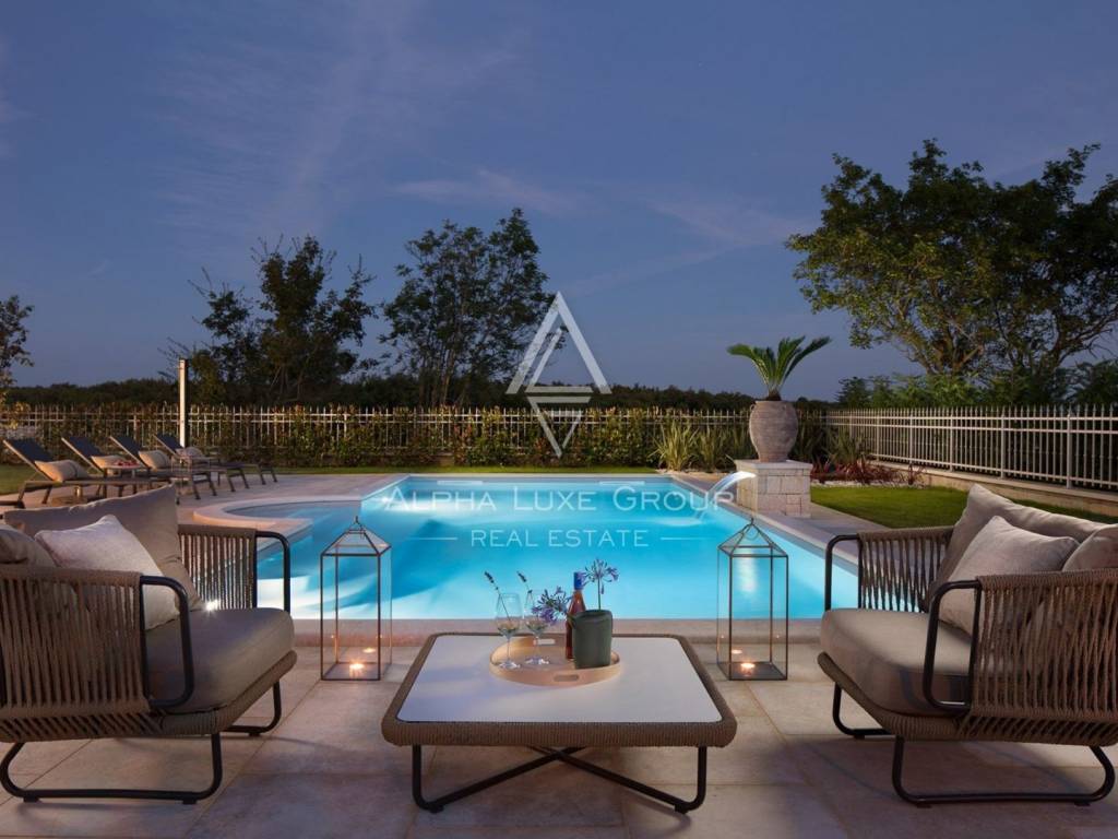 Located near Kanfanar, 23 km from Poreč and 26 km from Rovinj, this opulent villa offers an idyllic retreat in the heart of Istria. The villa, spanning 353 m2 over two fully air-conditioned levels, accommodates up to 8 guests in luxurious comfort.