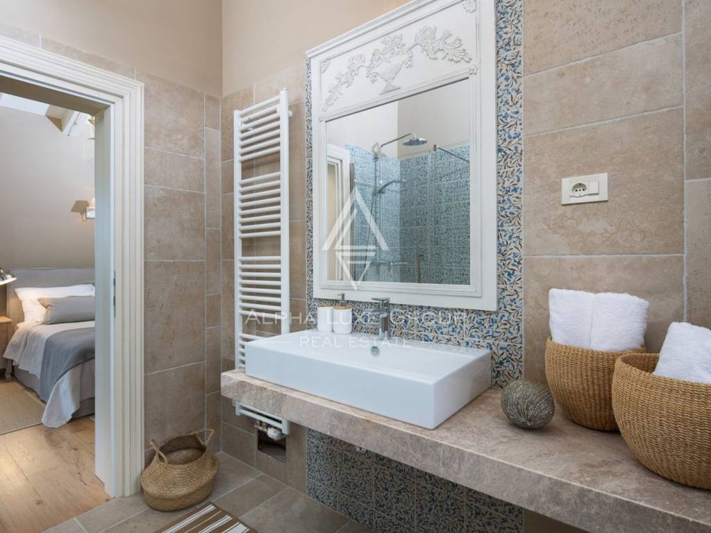 This villa, richly furnished in a rustic castle style, guarantees a premium living experience. Guests will enjoy the luxury of a private garden and a pool complete with a hydro-massage corner. The balcony on the upper floor unveils a spectacular panoramic view of the sea.