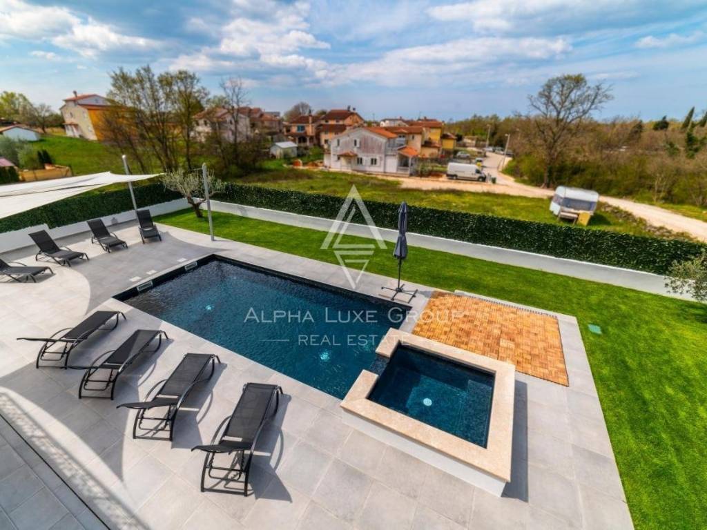Near Porec, 4 km from the city and the sea, this modern villa with a pool is for sale.