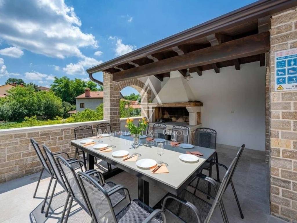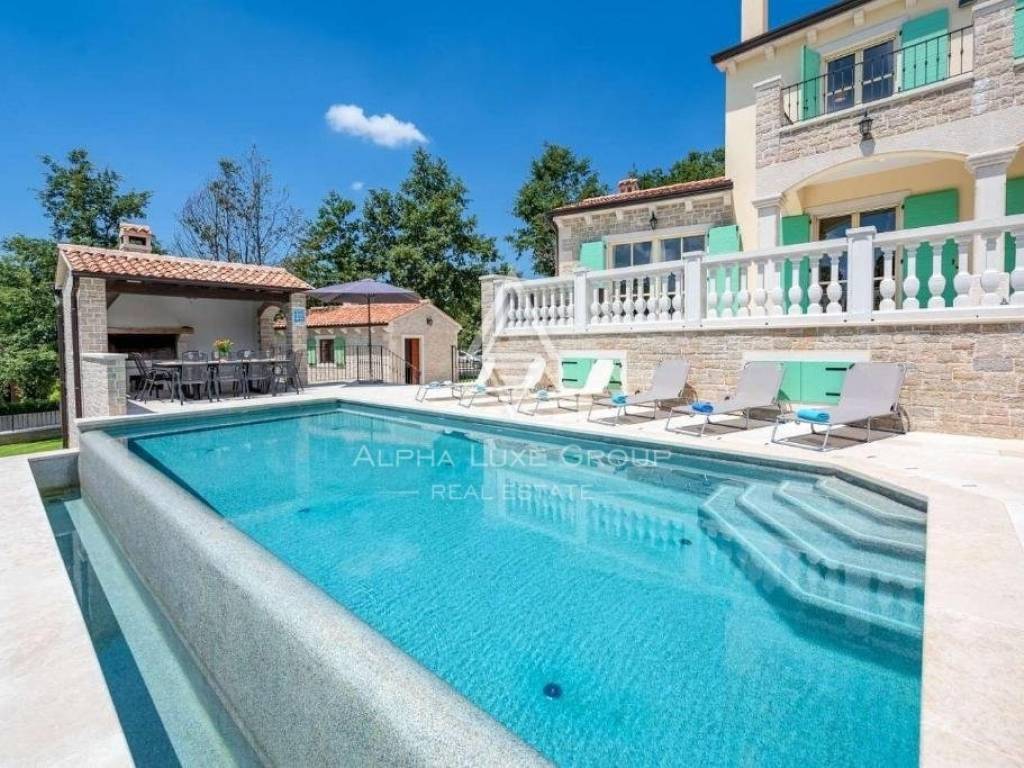 A unique Istrian estate for sale, a stone villa with a large garden and an infinity pool. Villa of classic style but modern decoration is located in a quiet location with open views. The villa with a total area of ​​343 m2 is spread over three floors. Basement, ground floor and first floor.