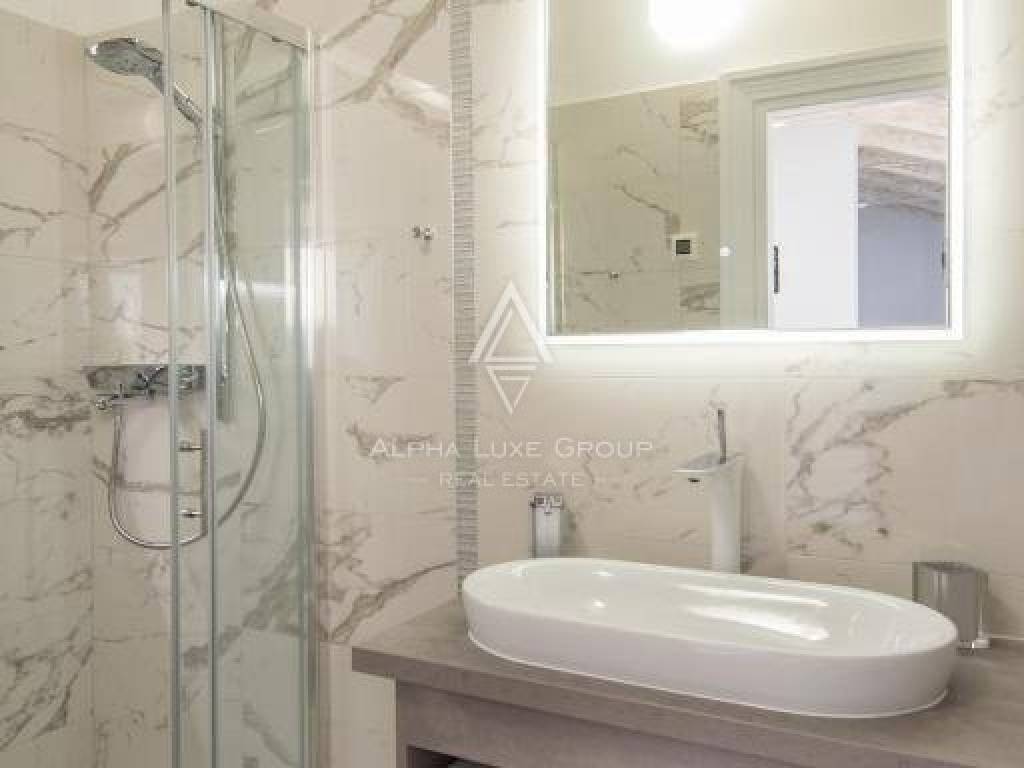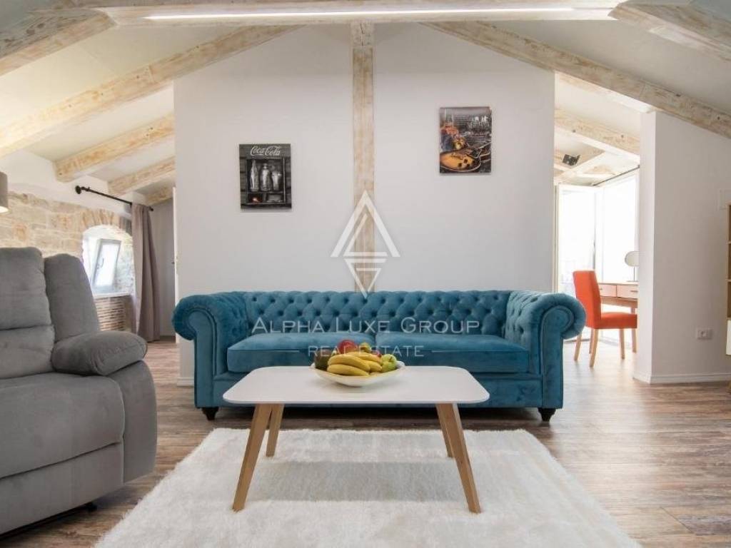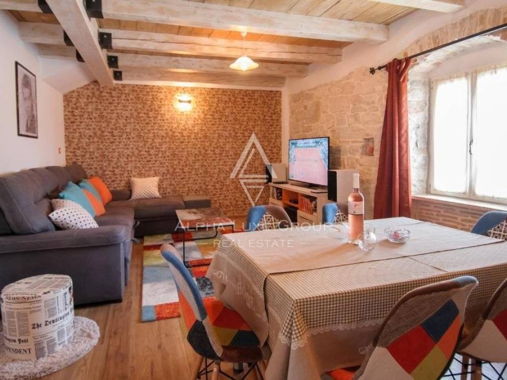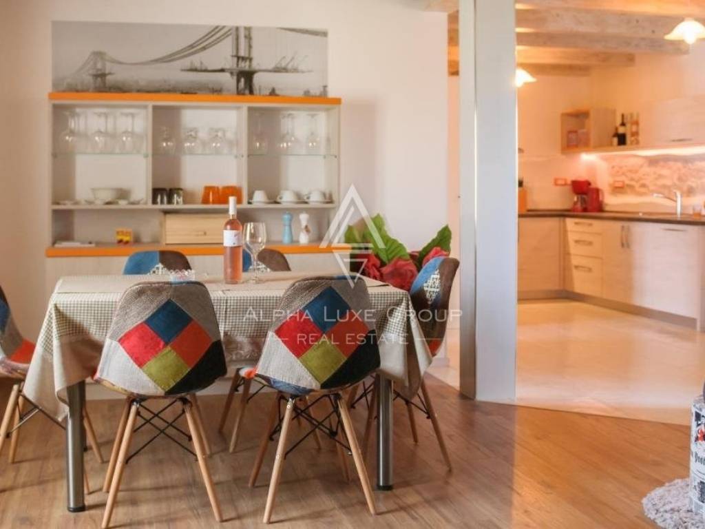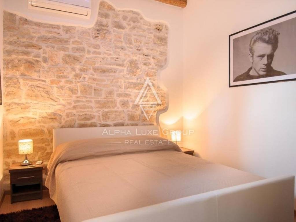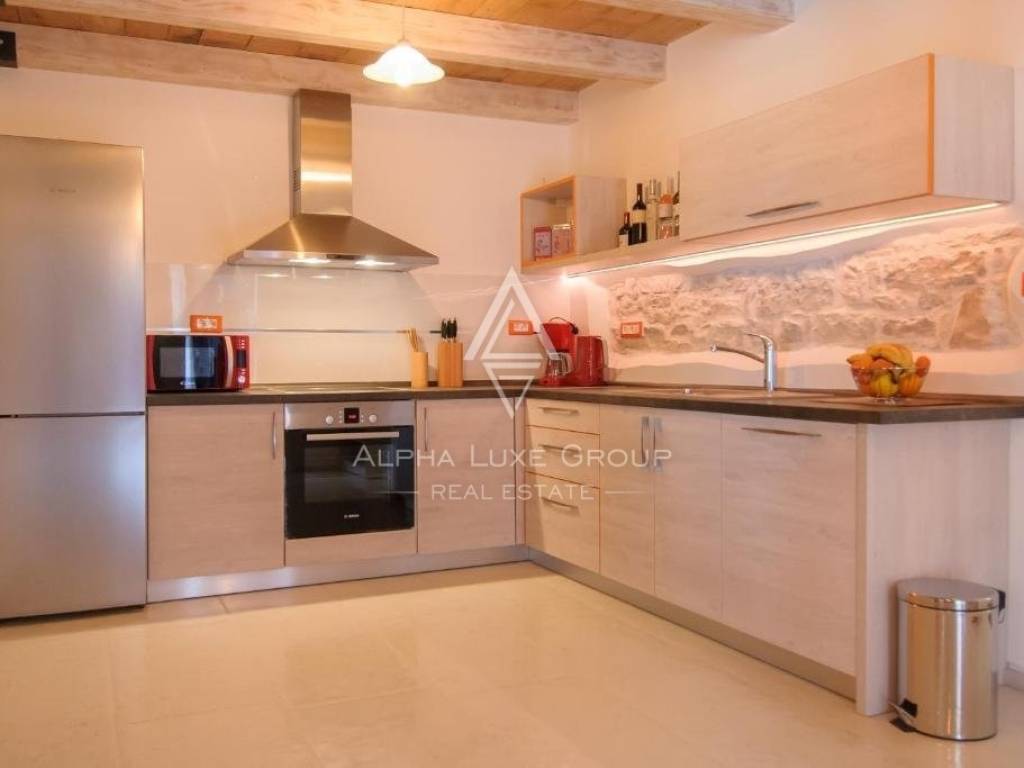 One apartment is on the ground level, two apartments are on the first level, and another is on the second level. There are six bedrooms and four bathrooms in the house. In 2015, it was completely renovated and outfitted with the most up-to-date amenities. Air conditioning and wood-burning fireplace heat and cool the home.