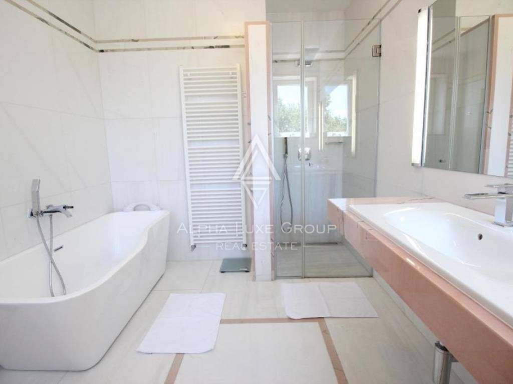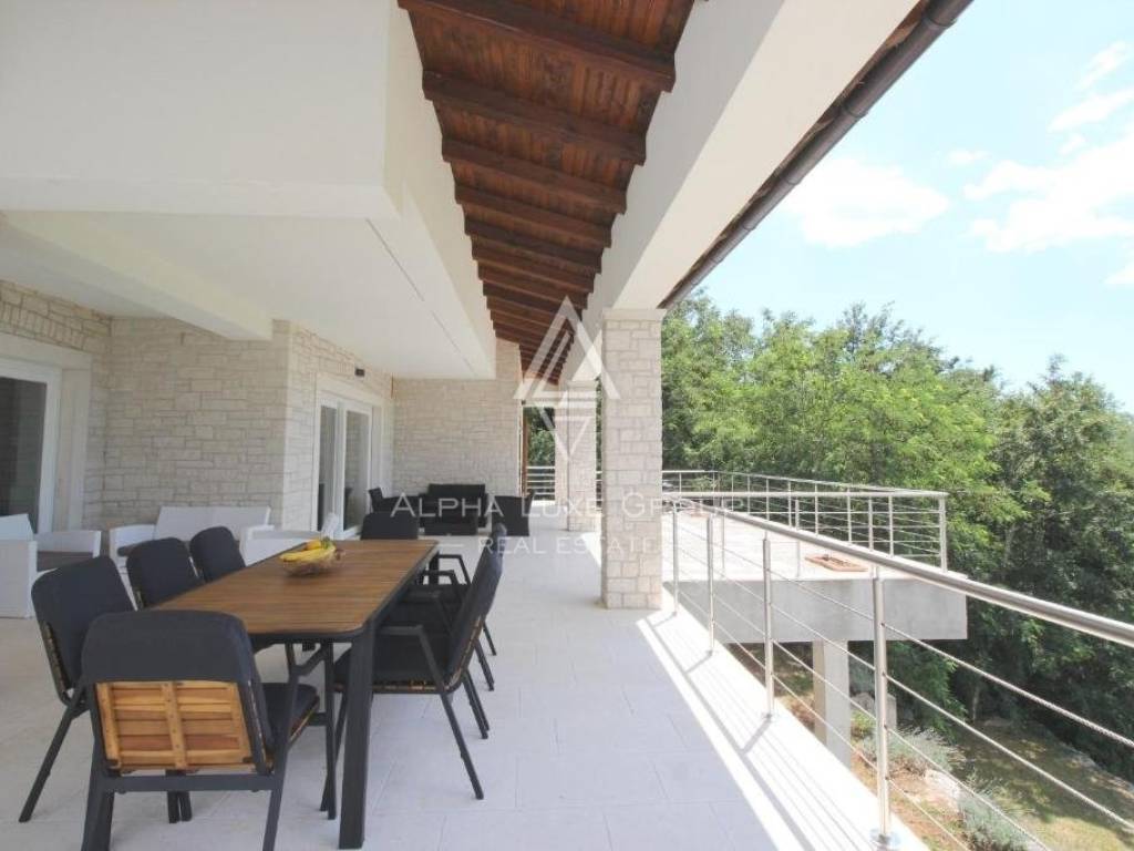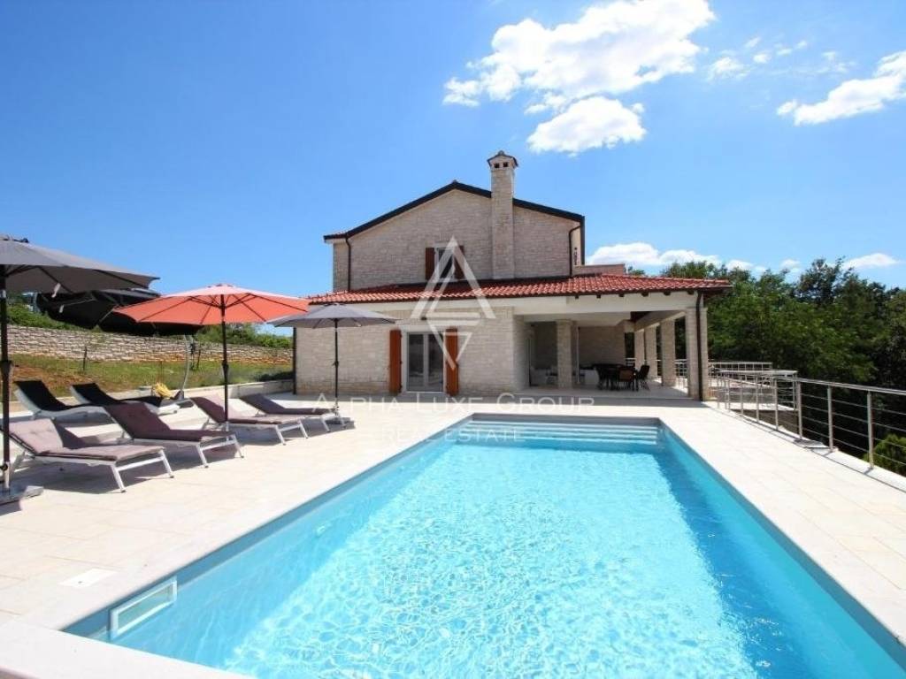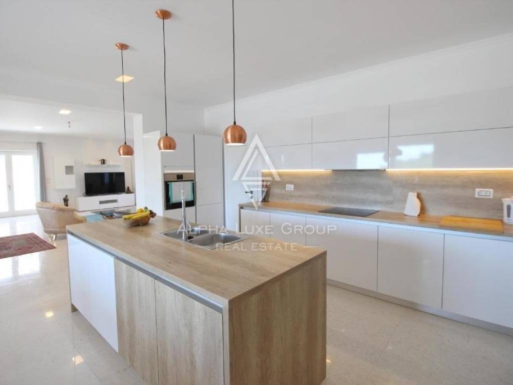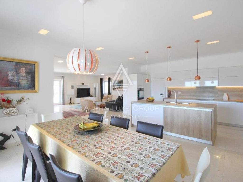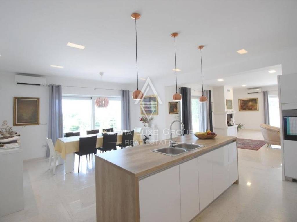 Underfloor heating with a heat pump is used to heat the home, and each room has its air conditioner for additional comfort and warmth throughout the winter. The fireplace in the living room will also keep things warm. The summers in the villa are cooling and comfortable to live because of the high-quality materials and double stone walls. In addition, a stone wall surrounds the large garden, including a huge swimming pool and a summer kitchen. The villa is completely furnished and on sale.