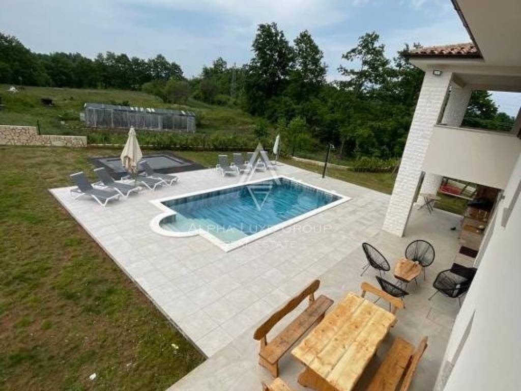 Discover an exceptional villa in Istria, positioned near Labin and the sought-after destination of Rabac. This modern abode, a haven of tranquility, promises an exclusive living experience. It is conveniently located 46 km from Pula Arena.