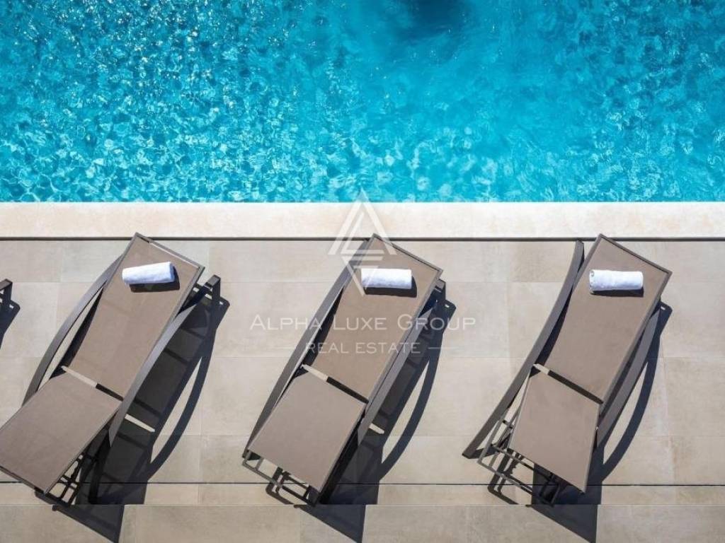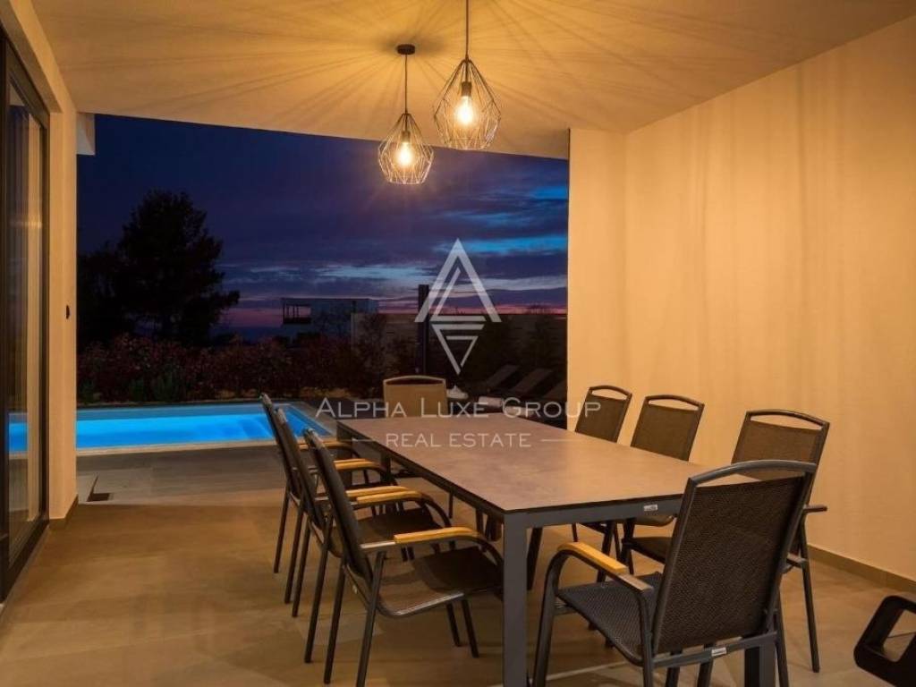 The enchanting garden encircling the villa features a heated swimming pool, creating a serene retreat for relaxation or entertainment. This villa is more than just a residence; it's a symphony of luxury, elegance, and unparalleled style. Experience a blend of superior design, functionality, and aesthetics, all culminating in a luxurious haven with mesmerizing sea views.