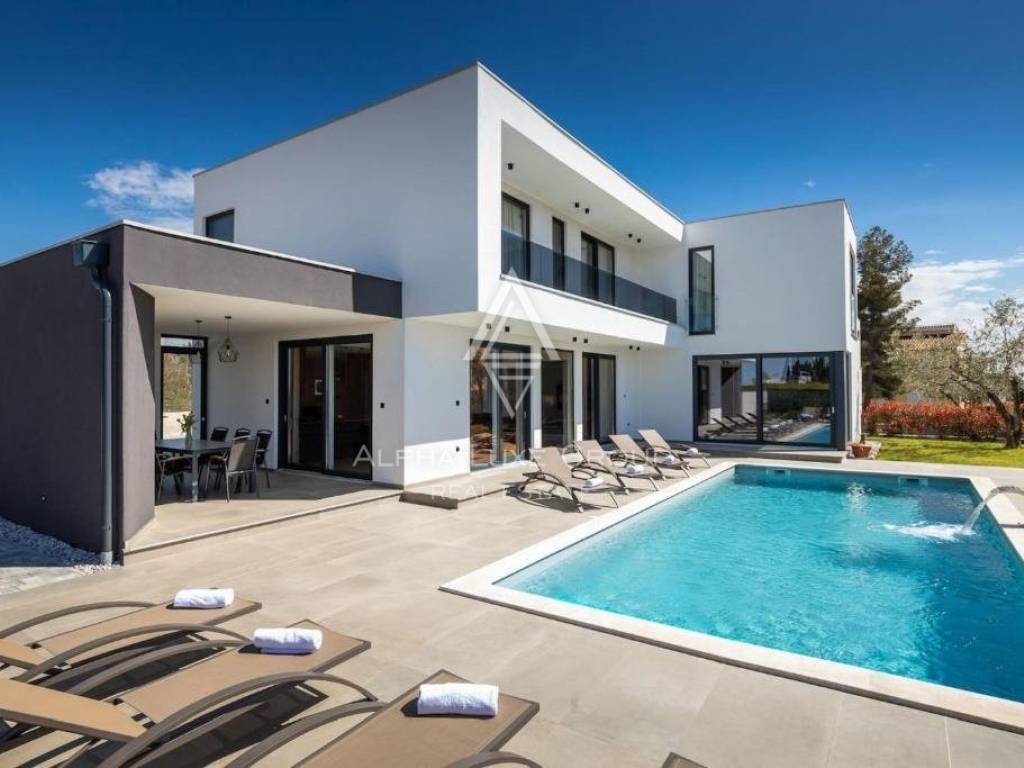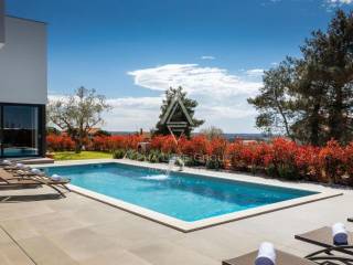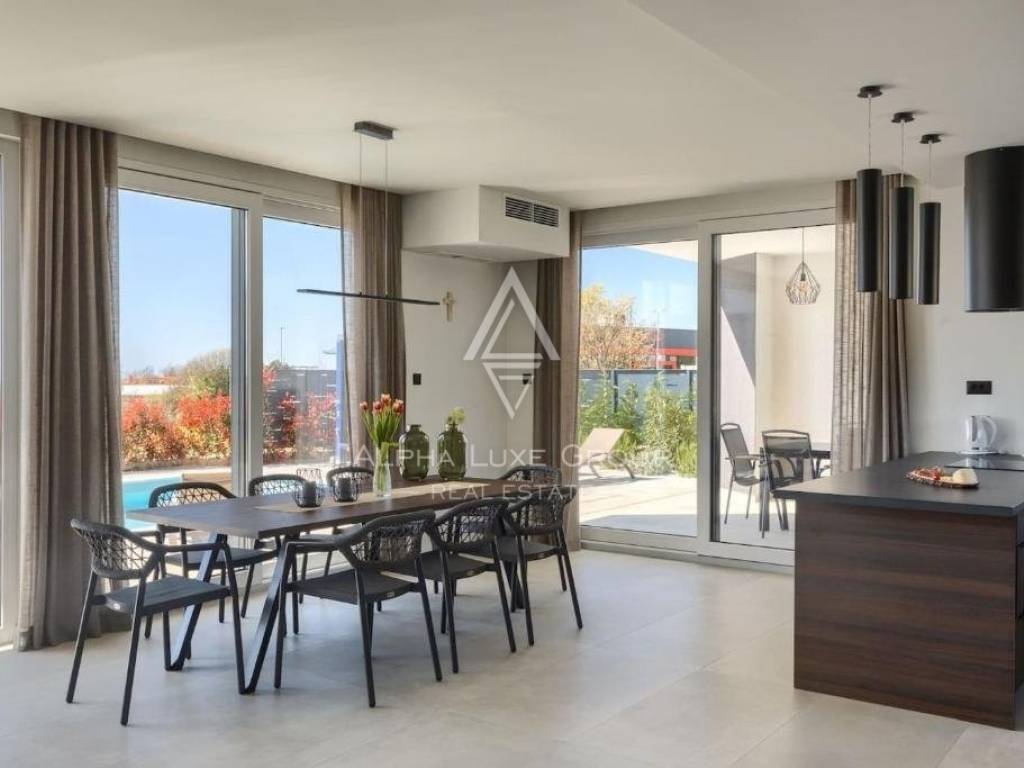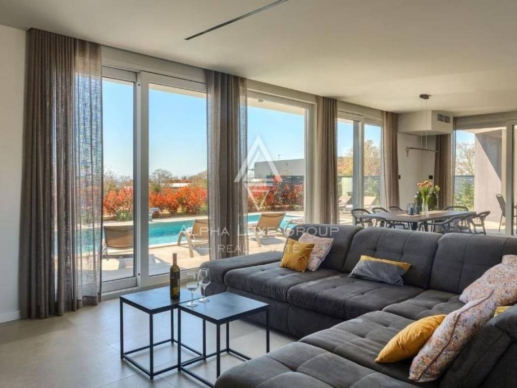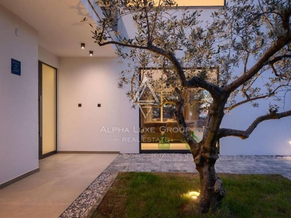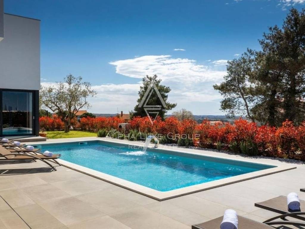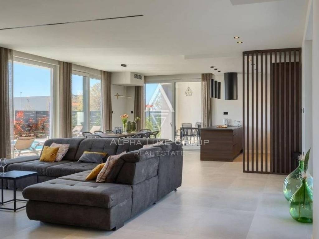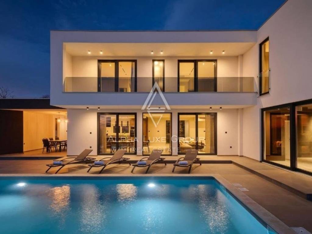 Discover luxury living in Poreč with this exquisite villa, nestled on a prestigious 854 m2 plot. Spanning 296 m2, this villa is a masterpiece of superior design and flawless execution. As you enter, the sense of spaciousness and harmony is palpable, enhanced by ambient lighting that radiates charm throughout the home. The ground floor unfolds into an impressive open-space concept, combining a sprawling living room, kitchen, and dining area, all bathed in natural light from elegant glass walls. The highlight is a wellness room, complete with an exclusive sauna and jacuzzi, offering private garden and heated pool access.