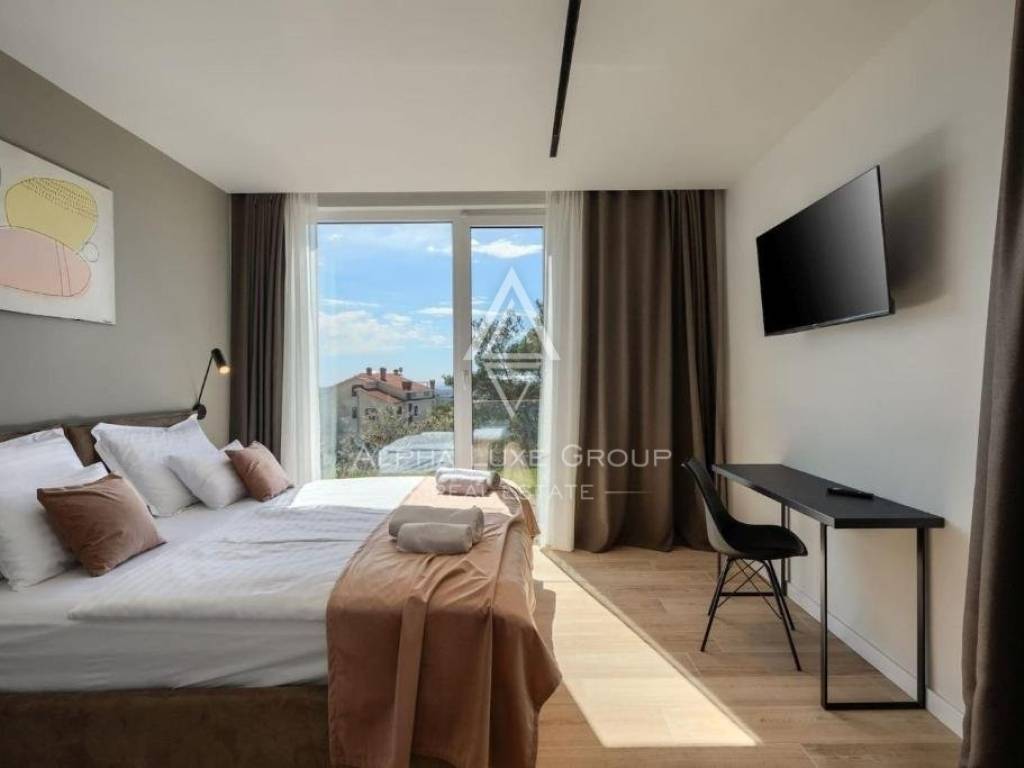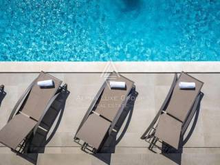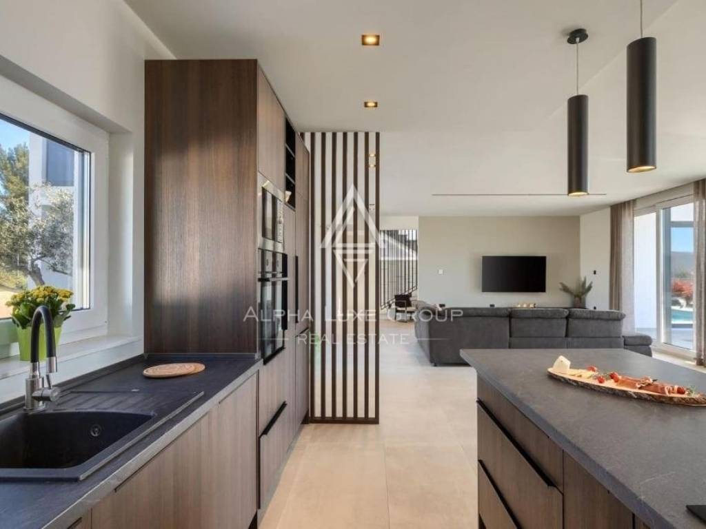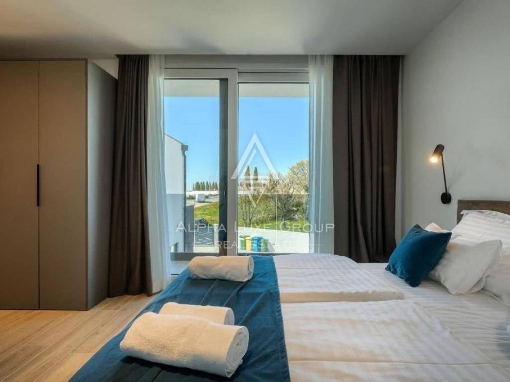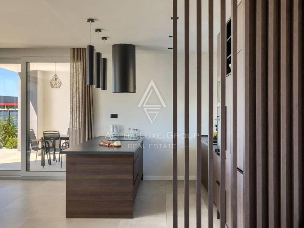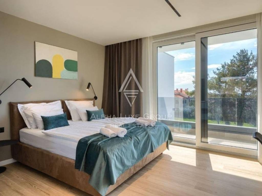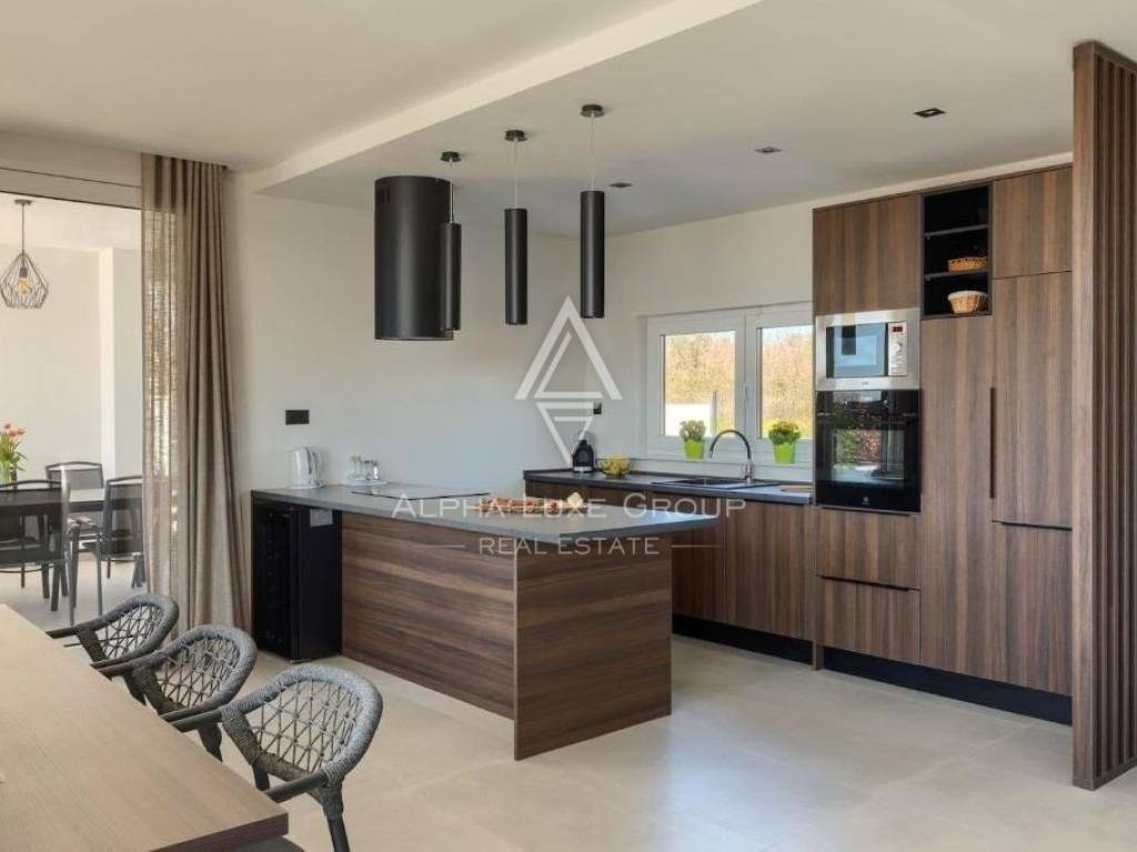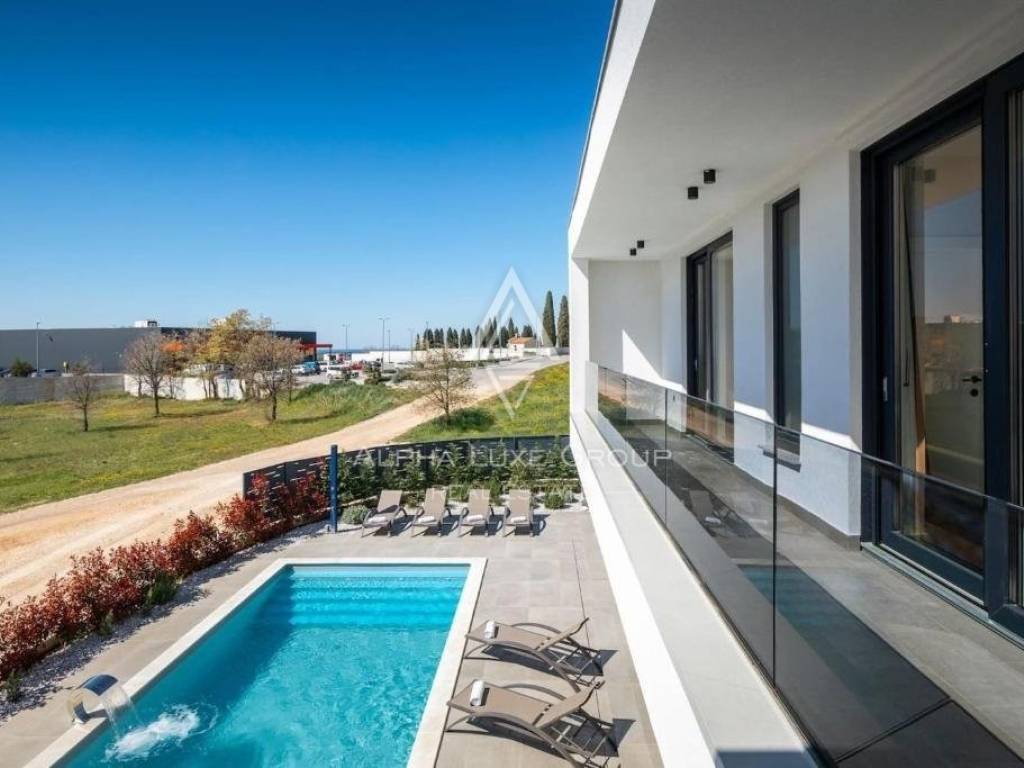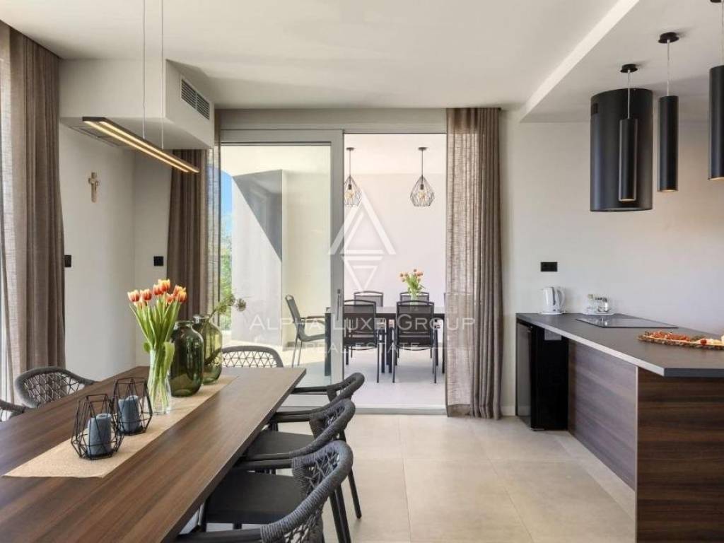 Discover luxury living in Poreč with this exquisite villa, nestled on a prestigious 854 m2 plot. Spanning 296 m2, this villa is a masterpiece of superior design and flawless execution. As you enter, the sense of spaciousness and harmony is palpable, enhanced by ambient lighting that radiates charm throughout the home. The ground floor unfolds into an impressive open-space concept, combining a sprawling living room, kitchen, and dining area, all bathed in natural light from elegant glass walls. The highlight is a wellness room, complete with an exclusive sauna and jacuzzi, offering private garden and heated pool access.