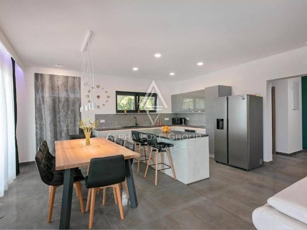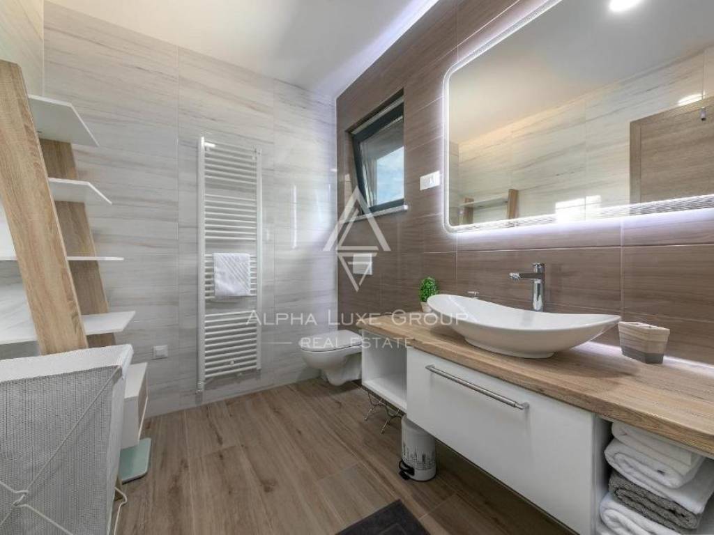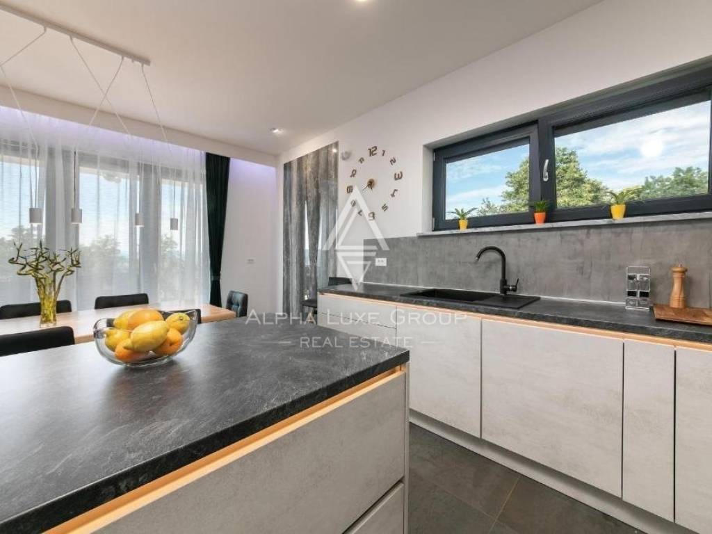 Constructed with energy efficiency in mind, this low-energy house incorporates cutting-edge technology and insulation to minimize energy use. Its design, from the thermal insulation of the façade, roof, and floors to the custom carpentry, optimizes energy efficiency. The interior, adorned in earthy tones accented with elegant white and grey, is fitted with state-of-the-art appliances, custom furniture from authentic Slavonian oak, ensuring a blend of luxury and eco-friendliness.