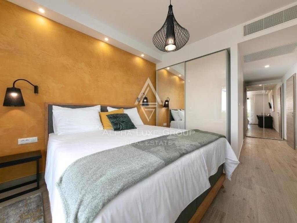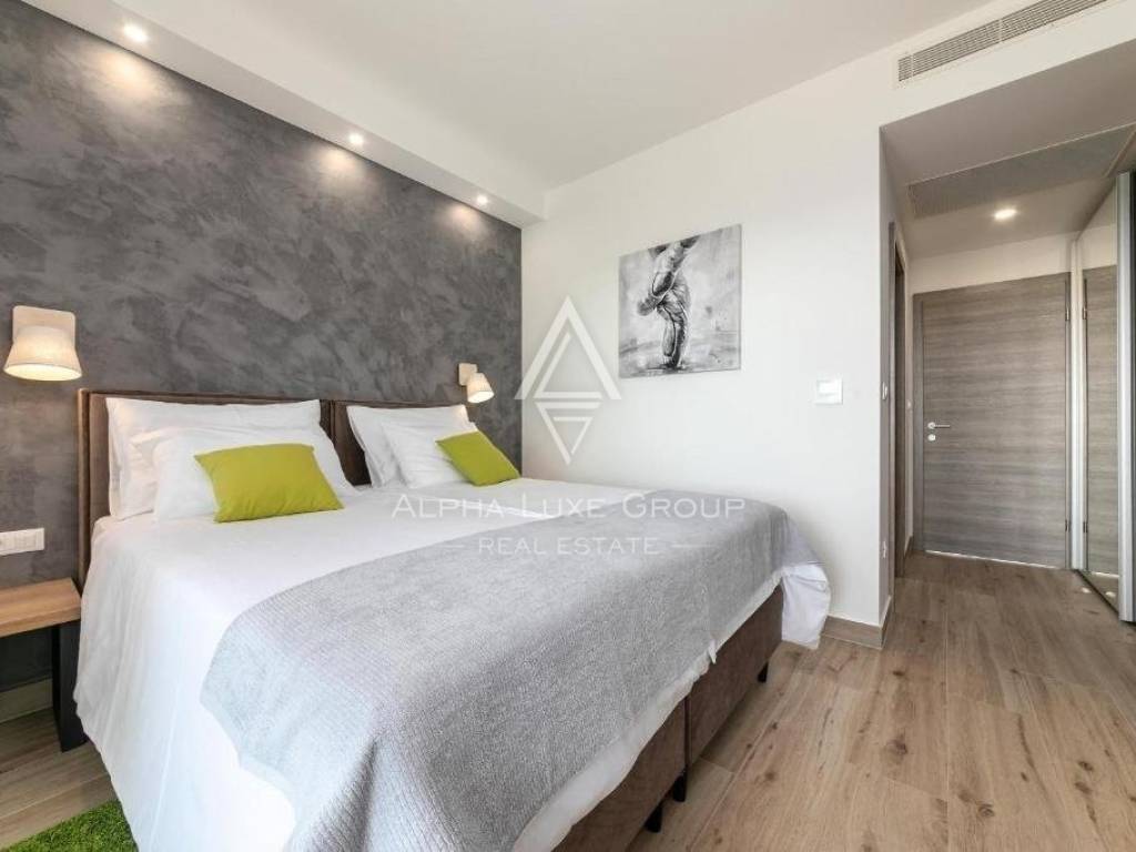 The upper level comprises three large bedrooms, each with an en-suite bathroom, and a 33.32 m2 terrace offering spectacular vistas. There's also a secluded 18.28 m2 terrace for serene mornings or enjoying the landscape, with provisions for a sauna and AC for a gym or playroom.