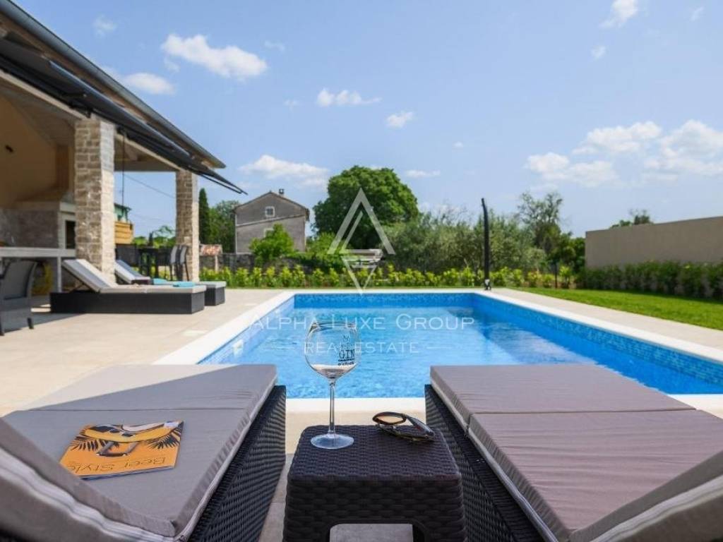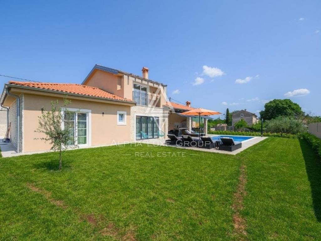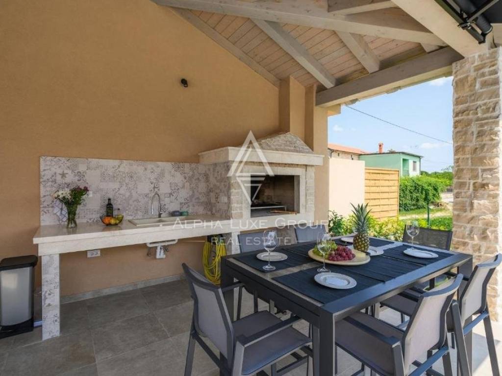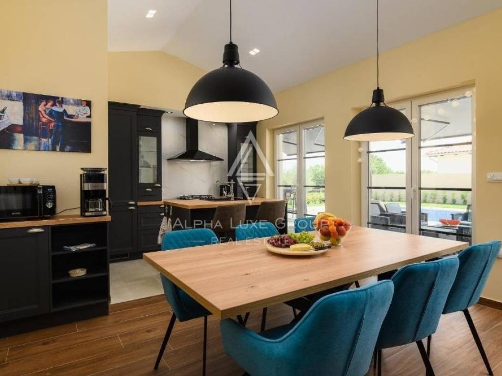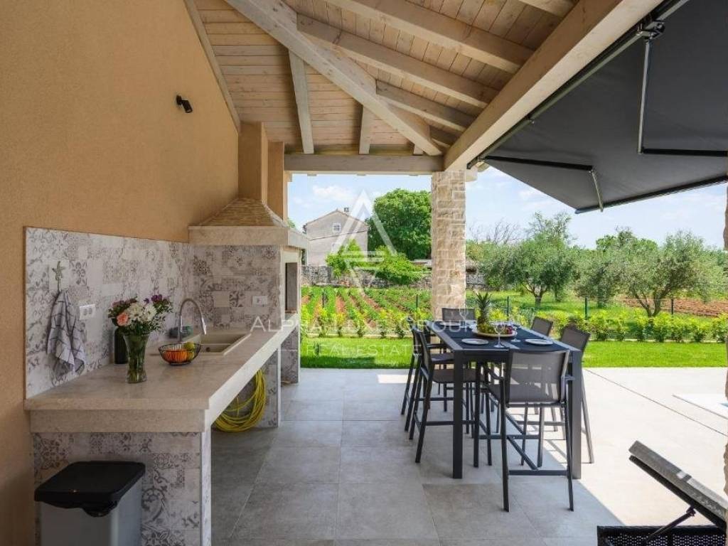 In the tranquil village of Kanfanar, nestled in the heart of Istria's hinterland, a stunning home offering modern comforts and timeless architecture is available for purchase. Just a 15-minute drive from Rovinj, this property provides a blend of mild Mediterranean climate and the natural landscape of inner Istria, appealing to both nature lovers and those appreciative of historical heritage.